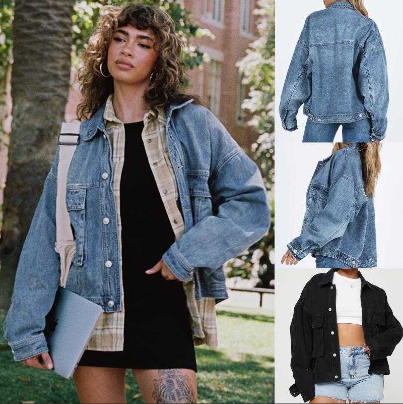 2025 봄 새로운 eBay 독립 긴 소매 데님 재킷 여성의 느슨한 캐주얼 멀티 포켓 작업 재킷