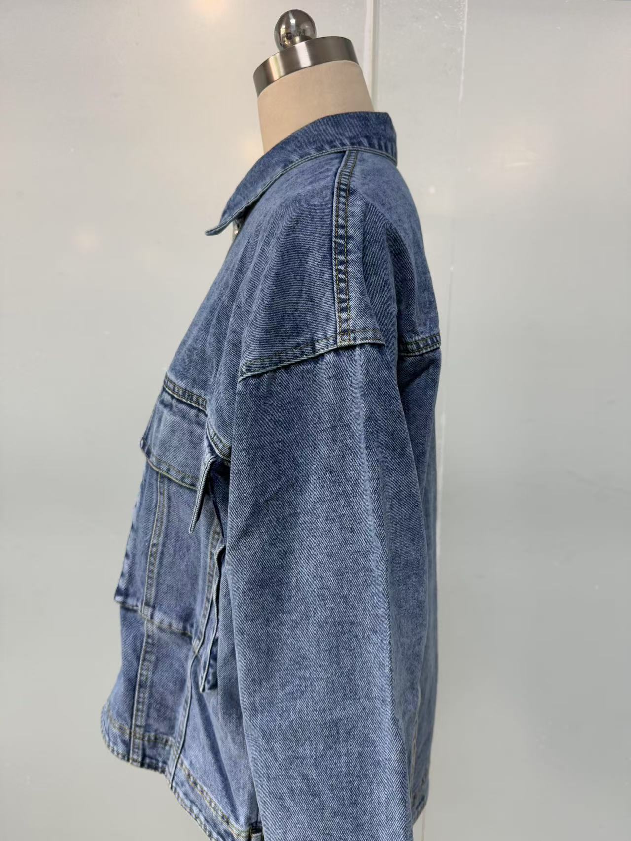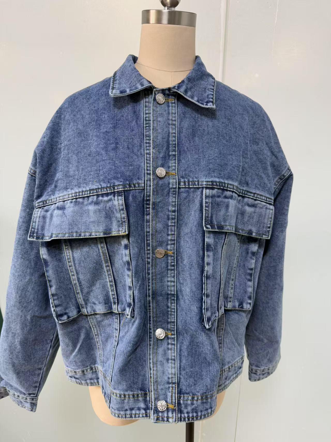 2025 봄 새로운 eBay 독립 긴 소매 데님 재킷 여성의 느슨한 캐주얼 멀티 포켓 작업 재킷스토어 가기