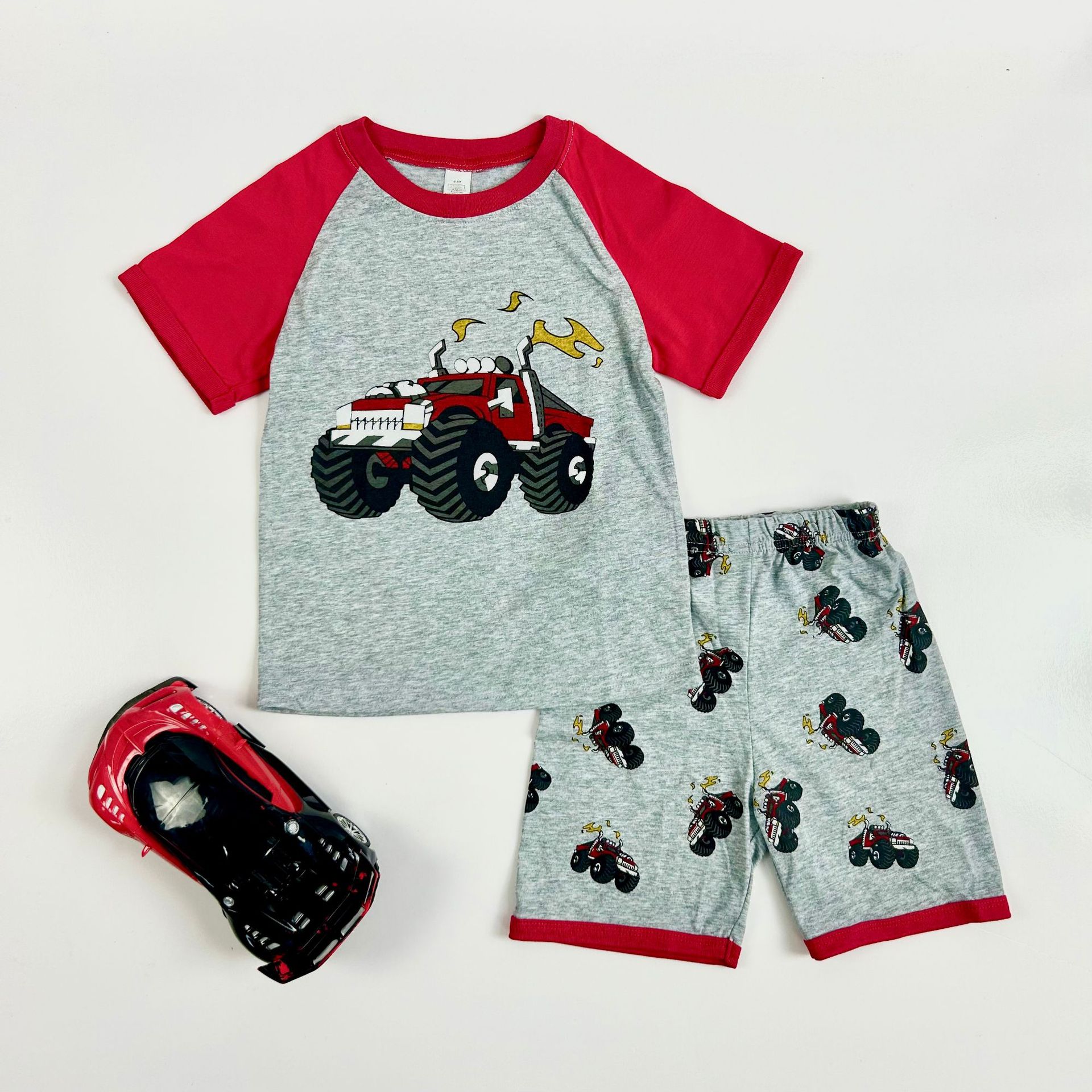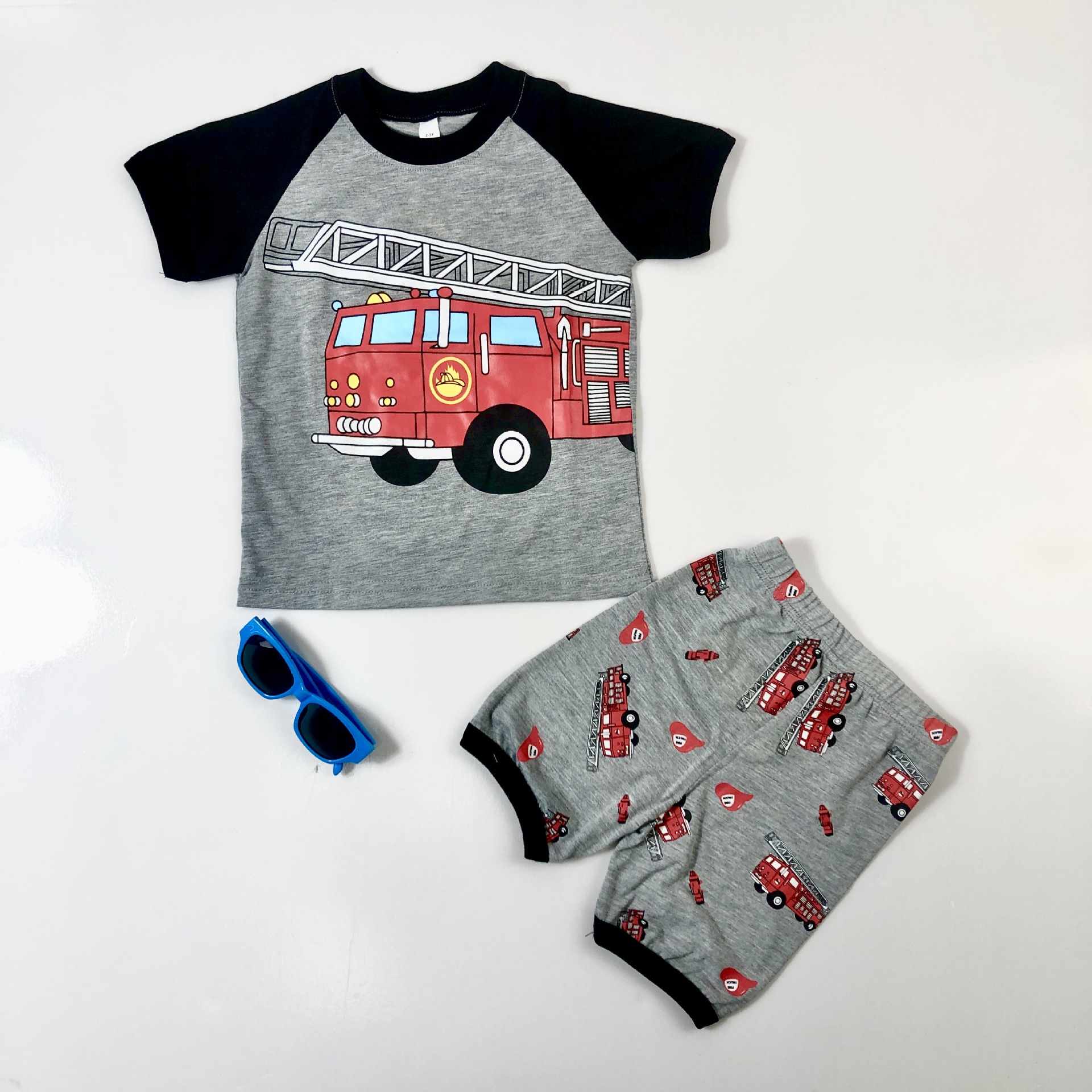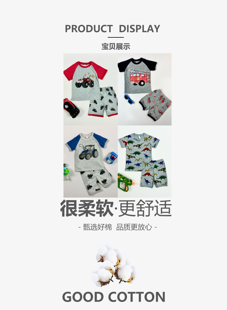 여름 소년 반팔 반바지 홈 의류 세트 자동차 공룡 소방차 패턴 잠옷 캐주얼 세트스토어 가기