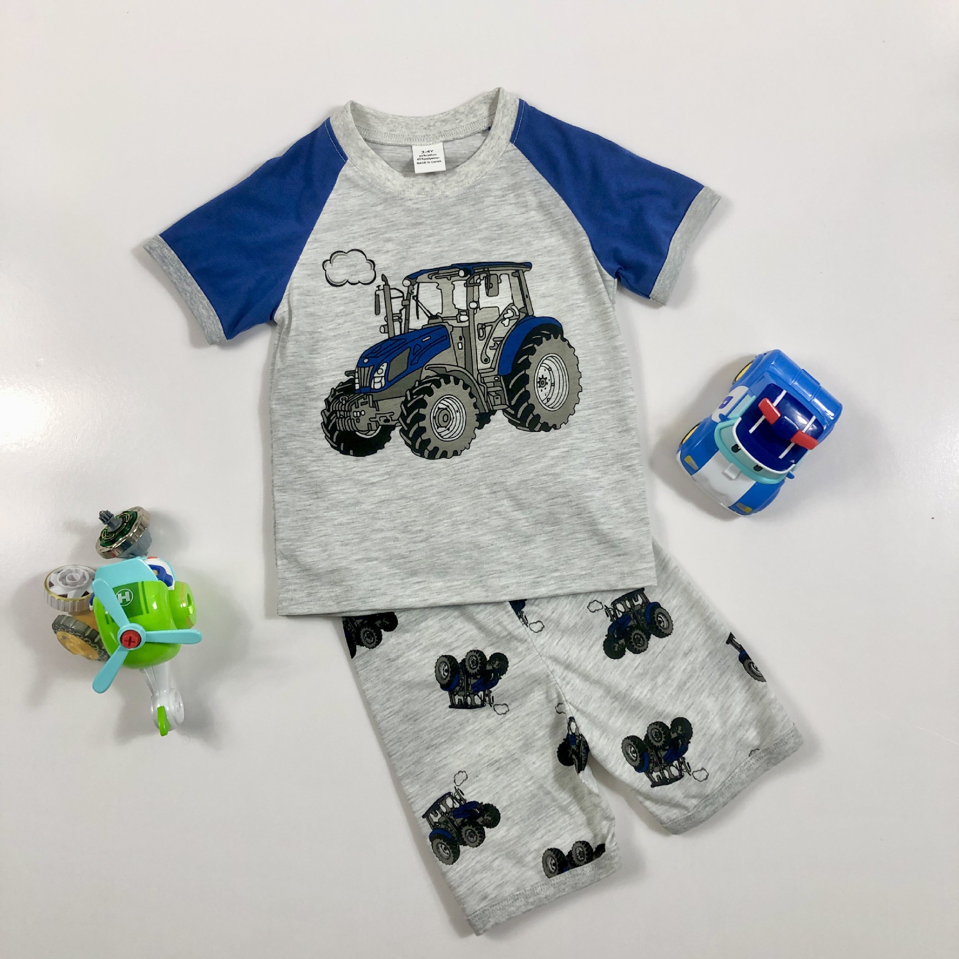 여름 소년 반팔 반바지 홈 의류 세트 자동차 공룡 소방차 패턴 잠옷 캐주얼 세트