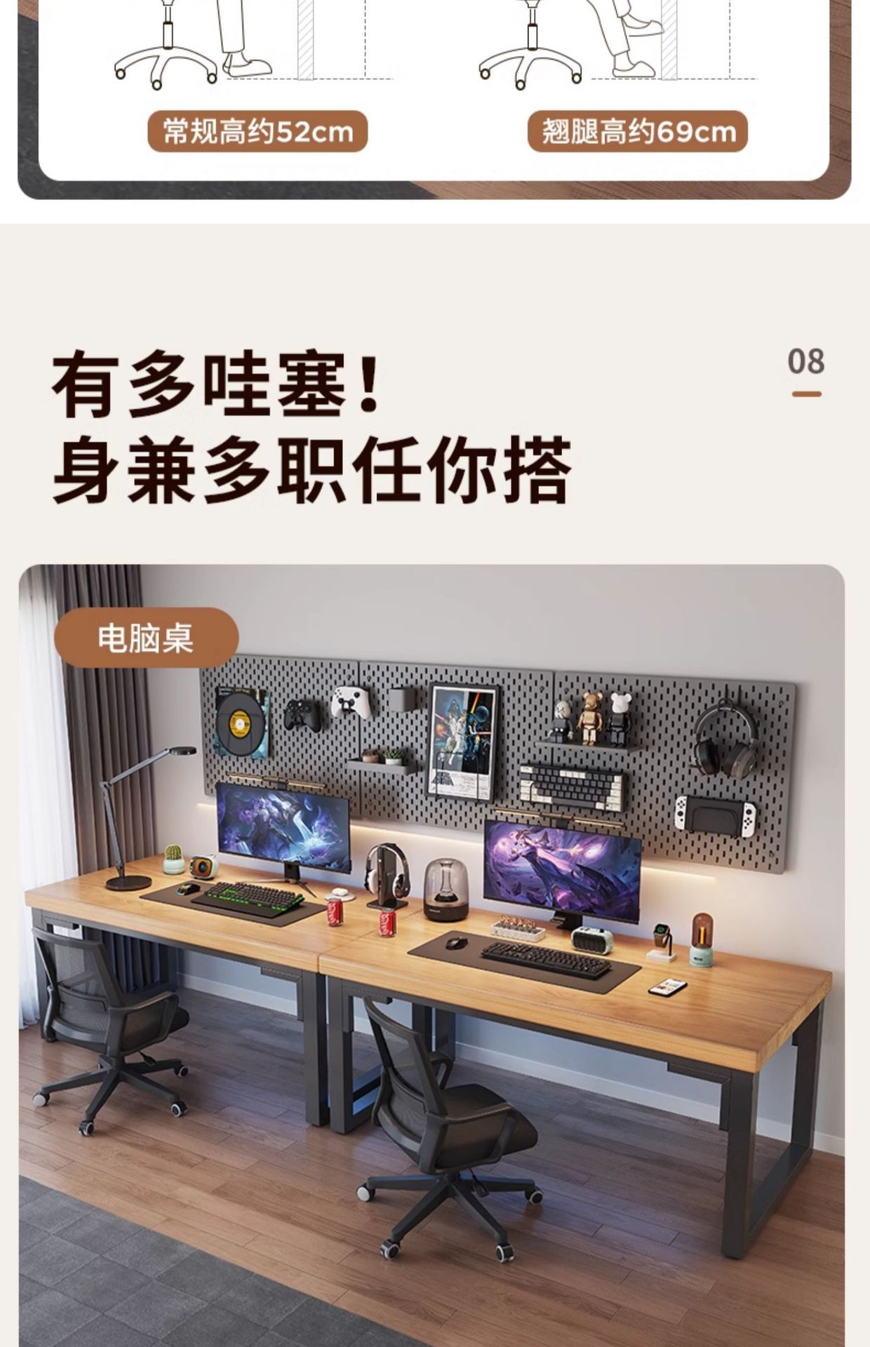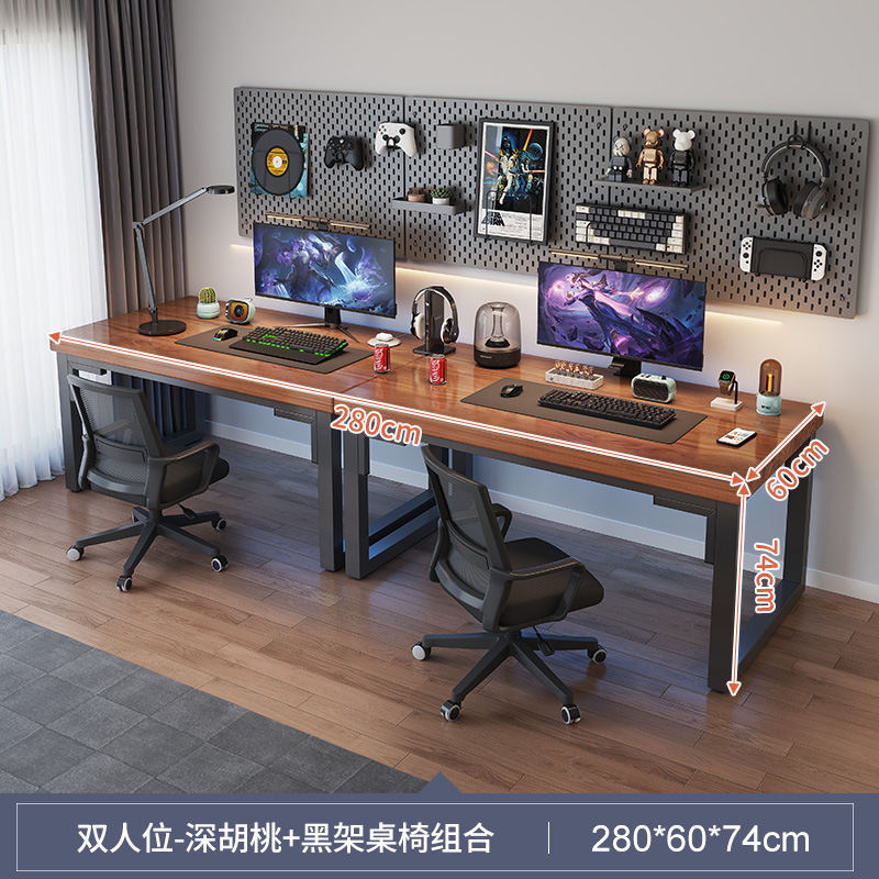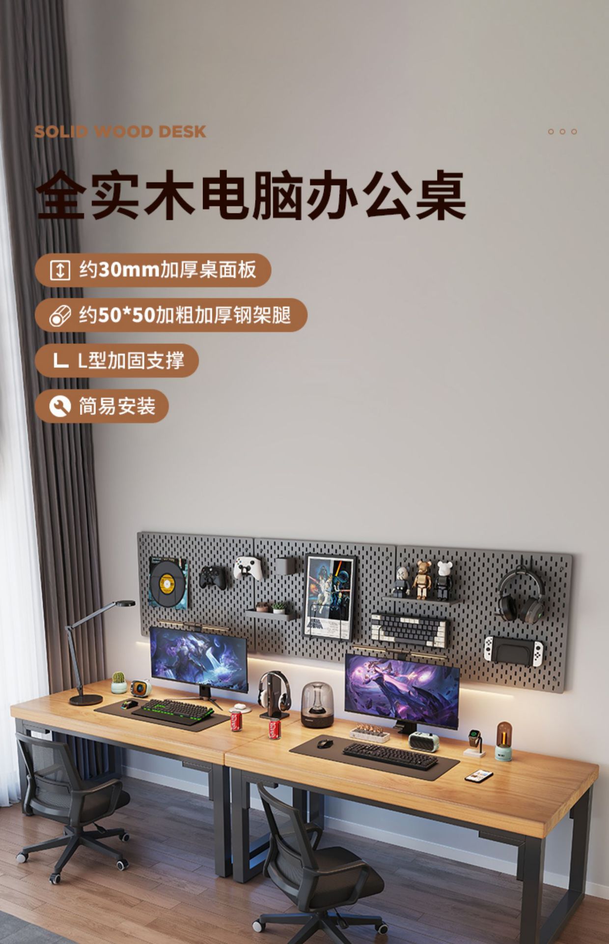 实木双人电脑桌台式电竞桌家用办公桌学生写字桌子书桌卧室工作台