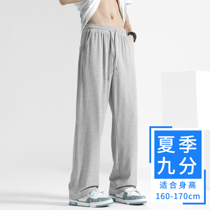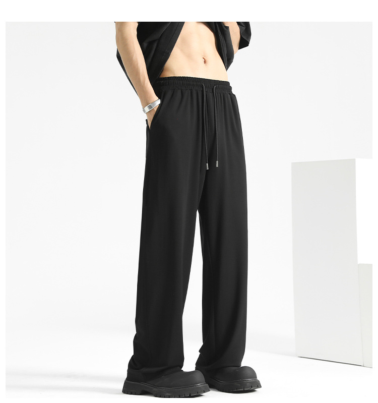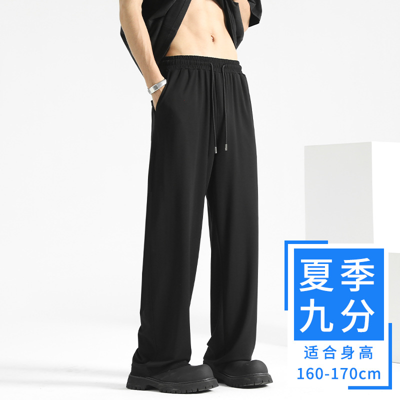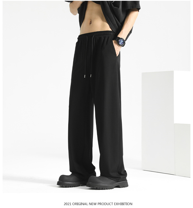 여름 드레이프 팬츠 남성용 스트레이트 캐주얼 롱 팬츠 루즈핏 와이드 팬츠 남성 스포츠 팬츠 봄 스웨트팬츠