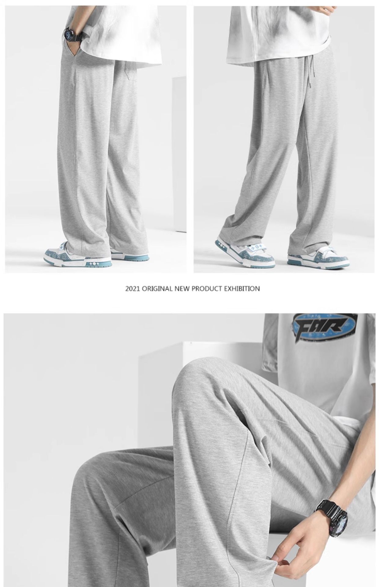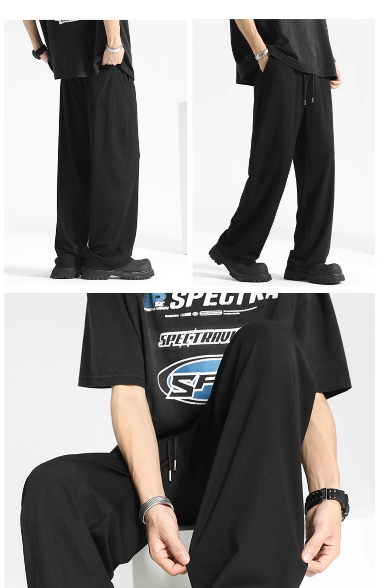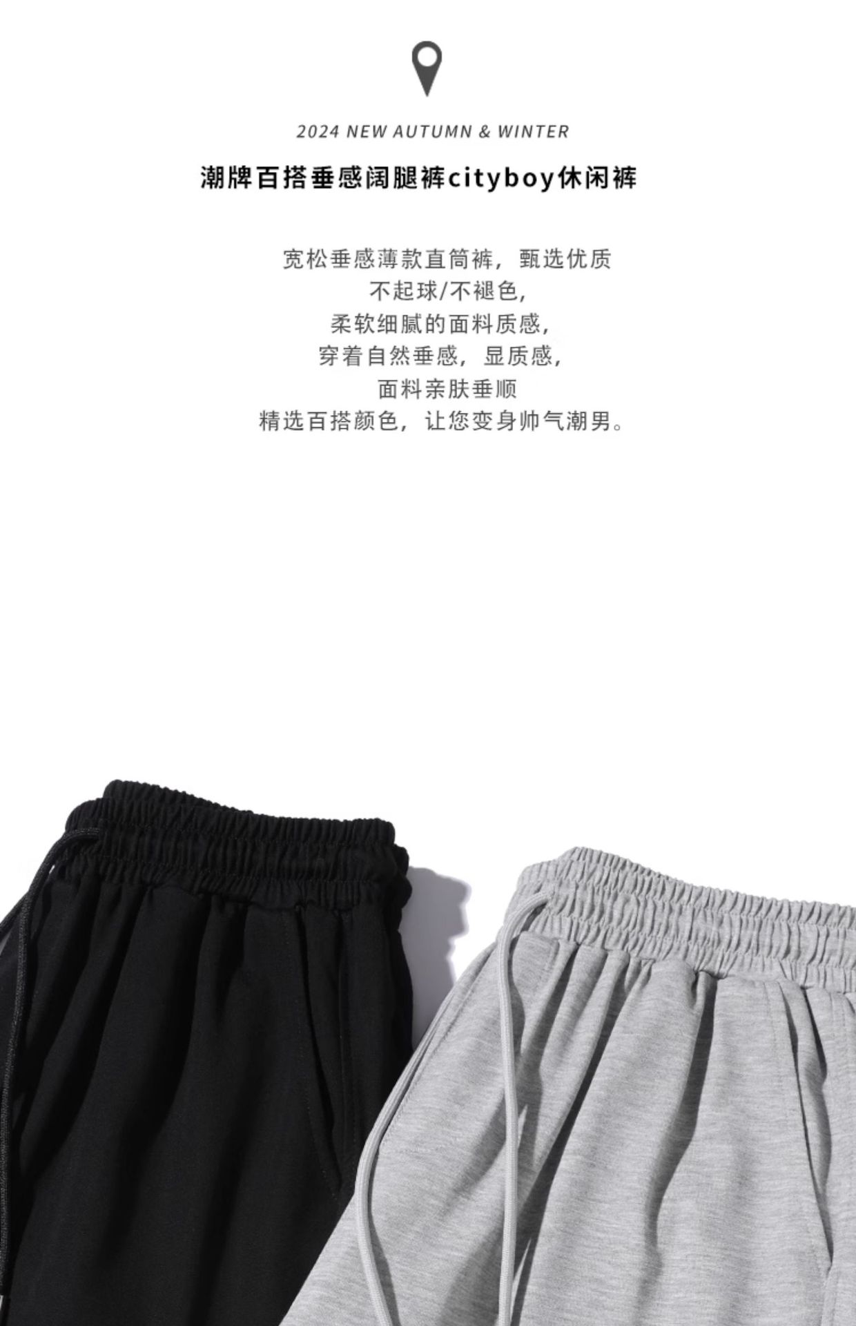 여름 드레이프 팬츠 남성용 스트레이트 캐주얼 롱 팬츠 루즈핏 와이드 팬츠 남성 스포츠 팬츠 봄 스웨트팬츠스토어 가기