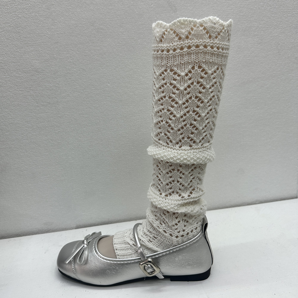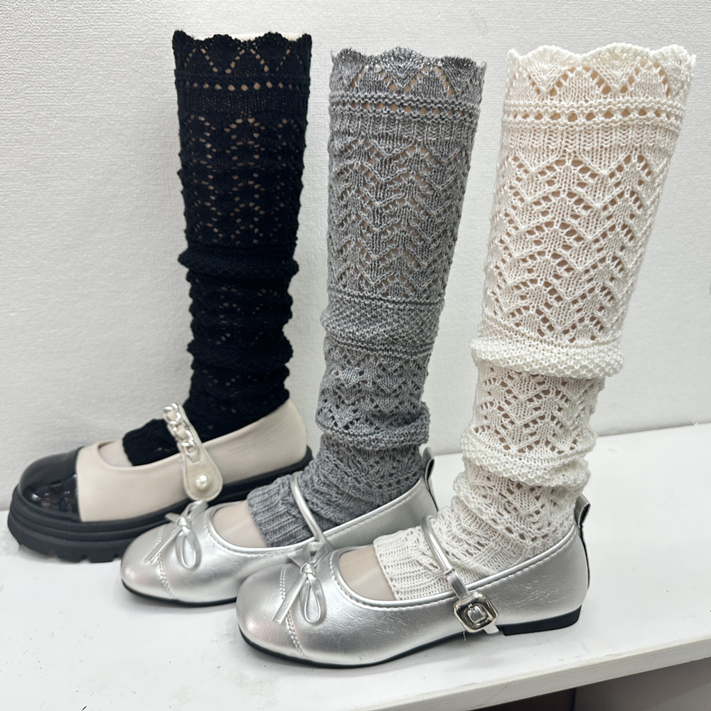 봄과 여름 새로운 얇은 속이 빈 더미 종아리 양말 견고한 튜브 양말 단색 달콤한 복고풍 두꺼운 다리 커버