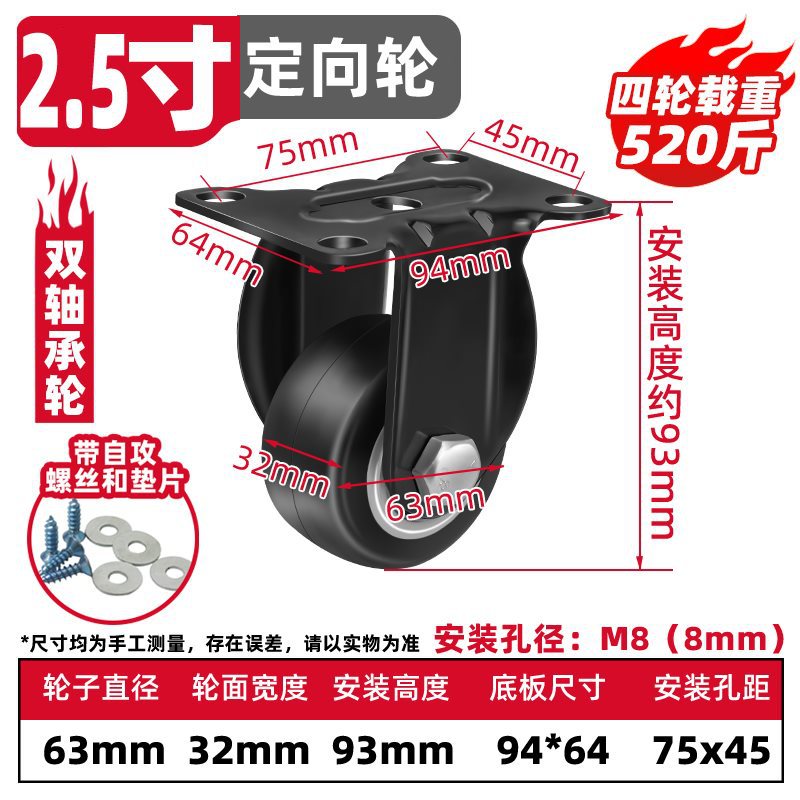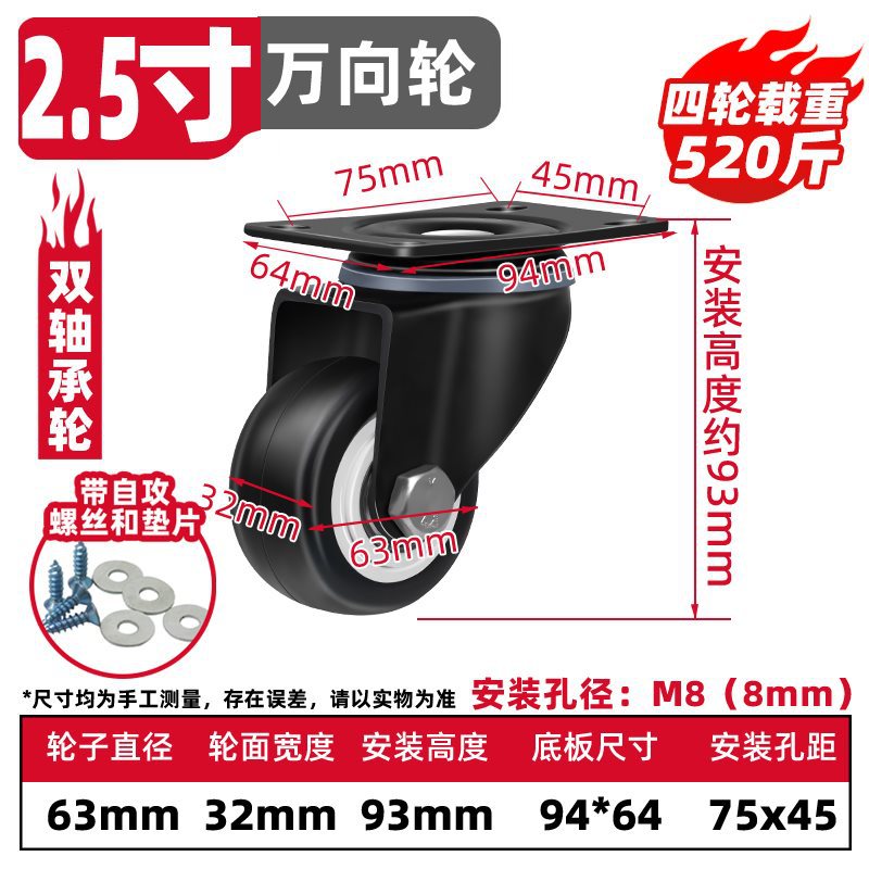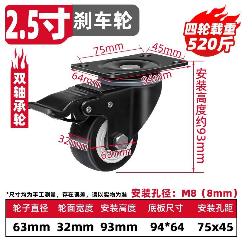 • 브레이크가 장착된 2.5인치 범용 휠(나사 포함)