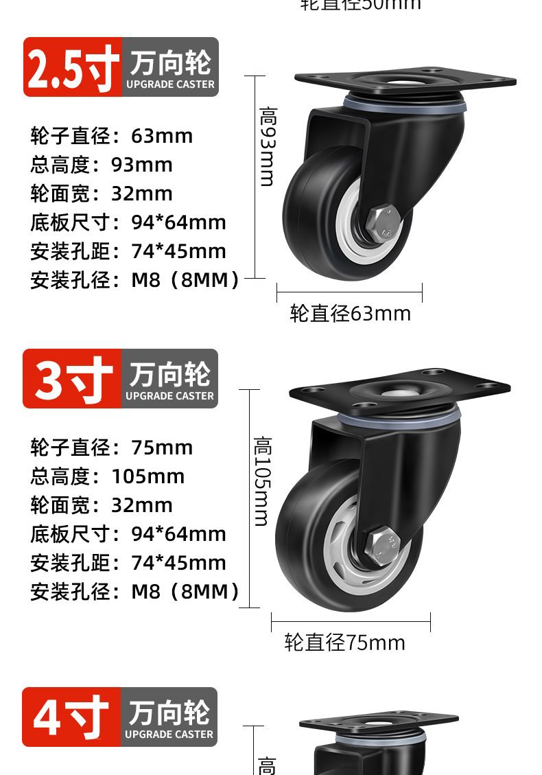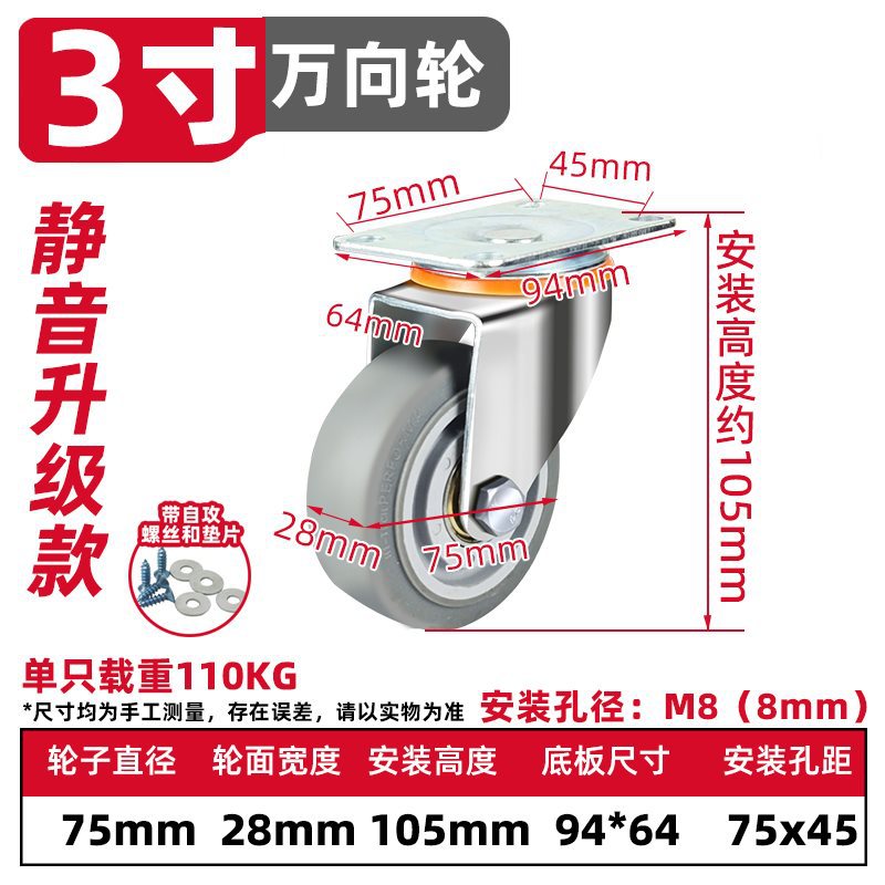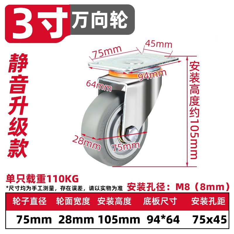 • 3inch 고무 범용 휠(사일런트 업그레이드)