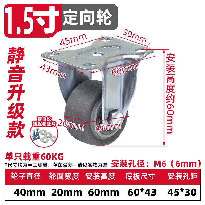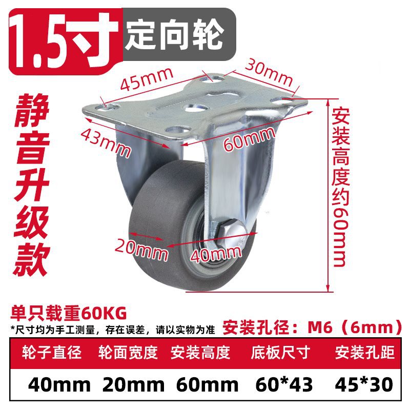 • 1.5inch 고무 방향 휠(조용한 업그레이드)