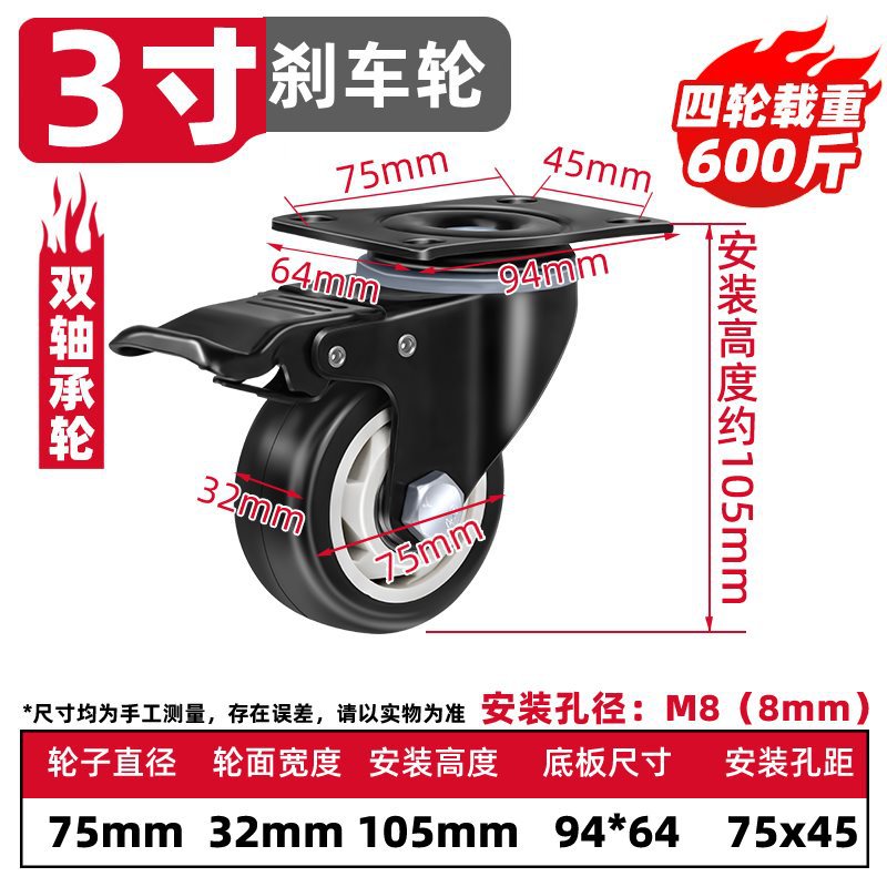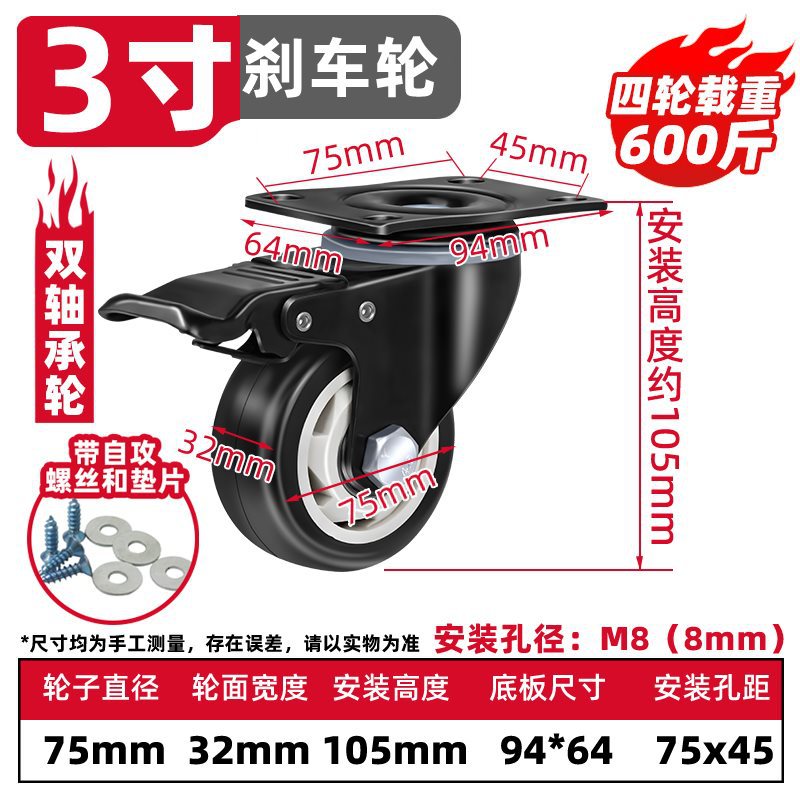• 3인치 범용 휠(브레이크 포함)(나사 포함)