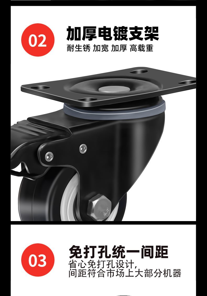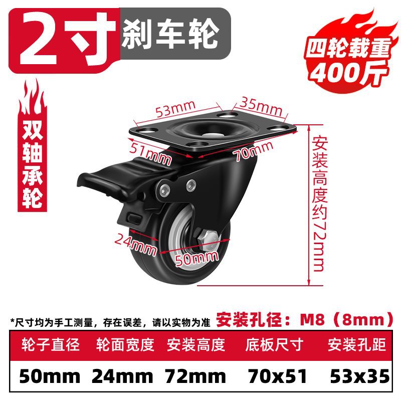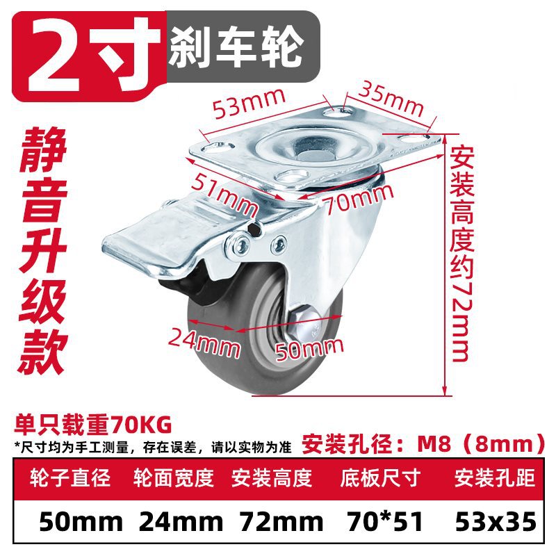 • 2inch 고무 범용 휠(브레이크 포함)(조용한 업그레이드)