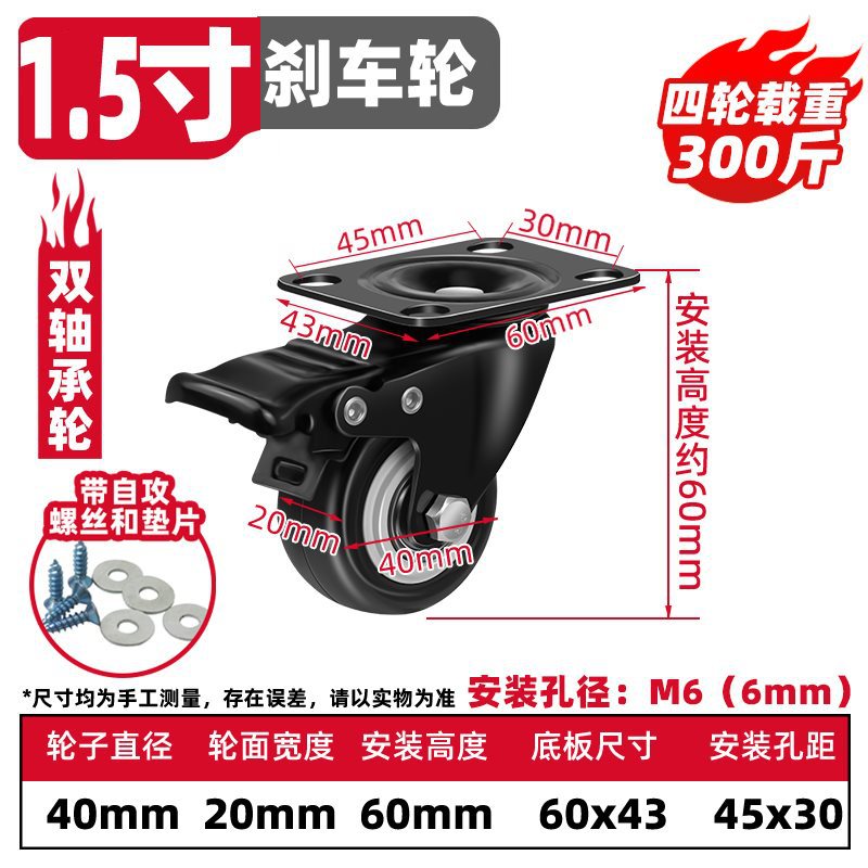 • 브레이크가 장착된 1.5인치 범용 휠(나사 포함)