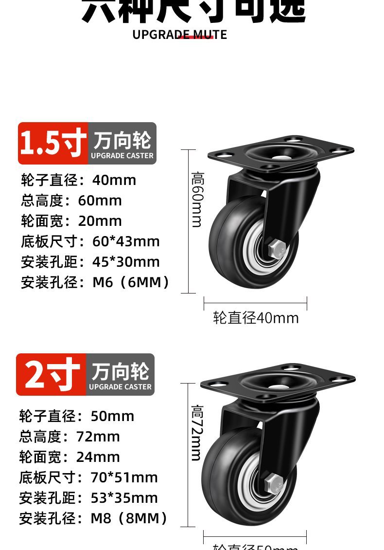 • 2inch 고무 범용 휠(사일런트 업그레이드)