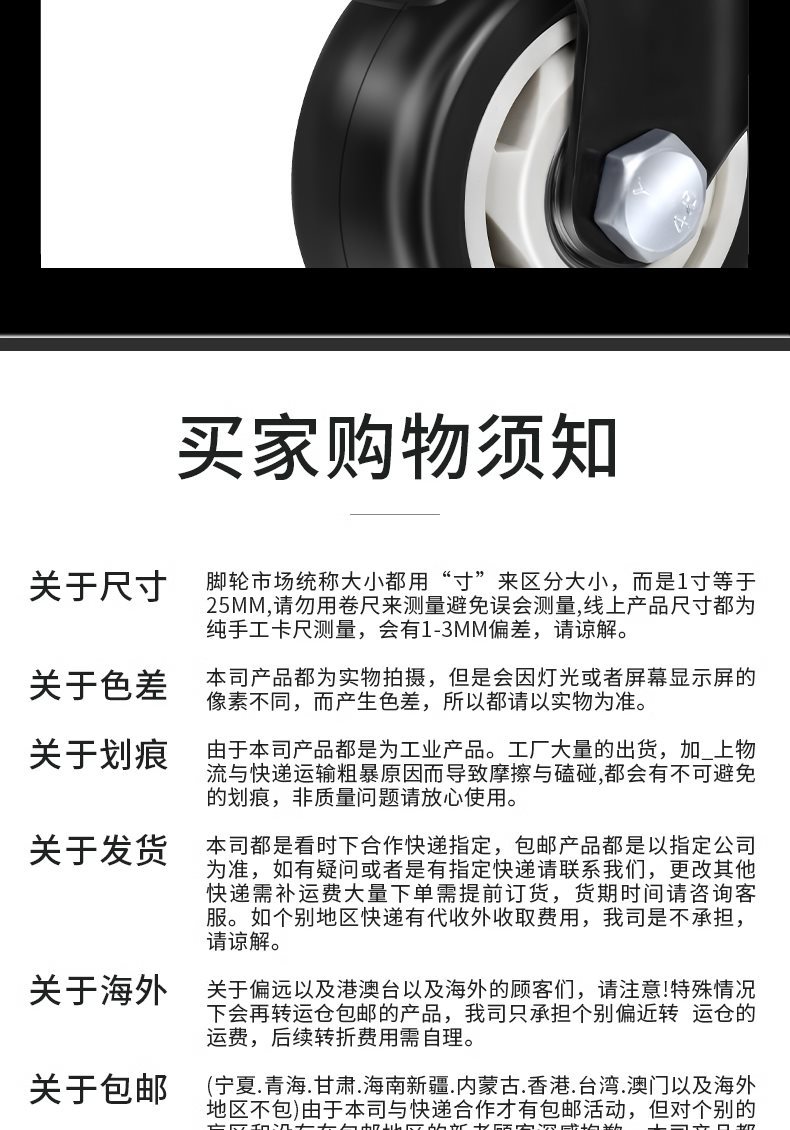 • 3inch 고무 방향 휠(자동 업그레이드)(나사 포함)