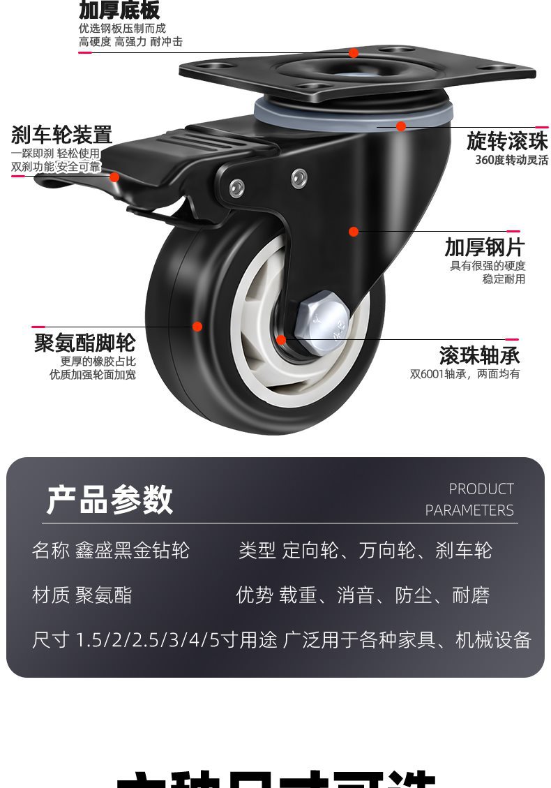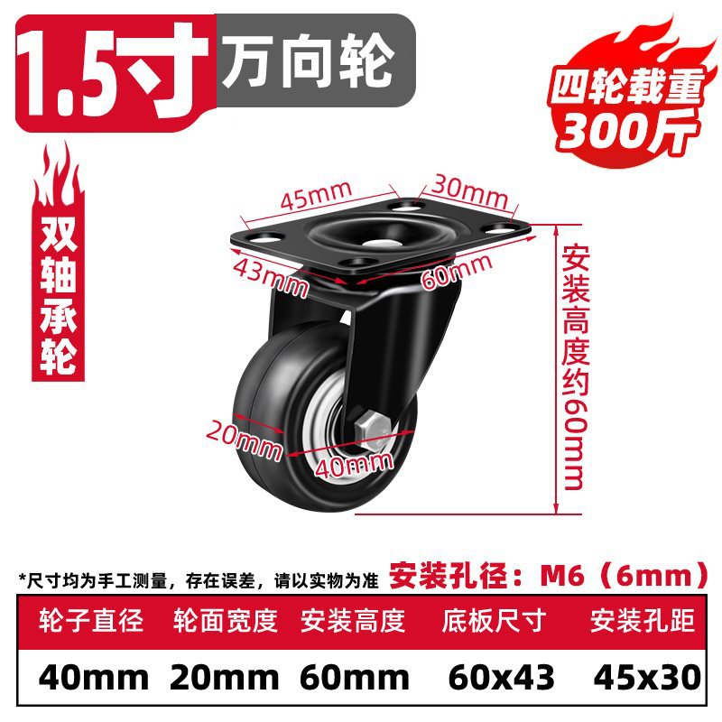 • 1.5inch 고무 범용 휠(브레이크 포함)(조용한 업그레이드)