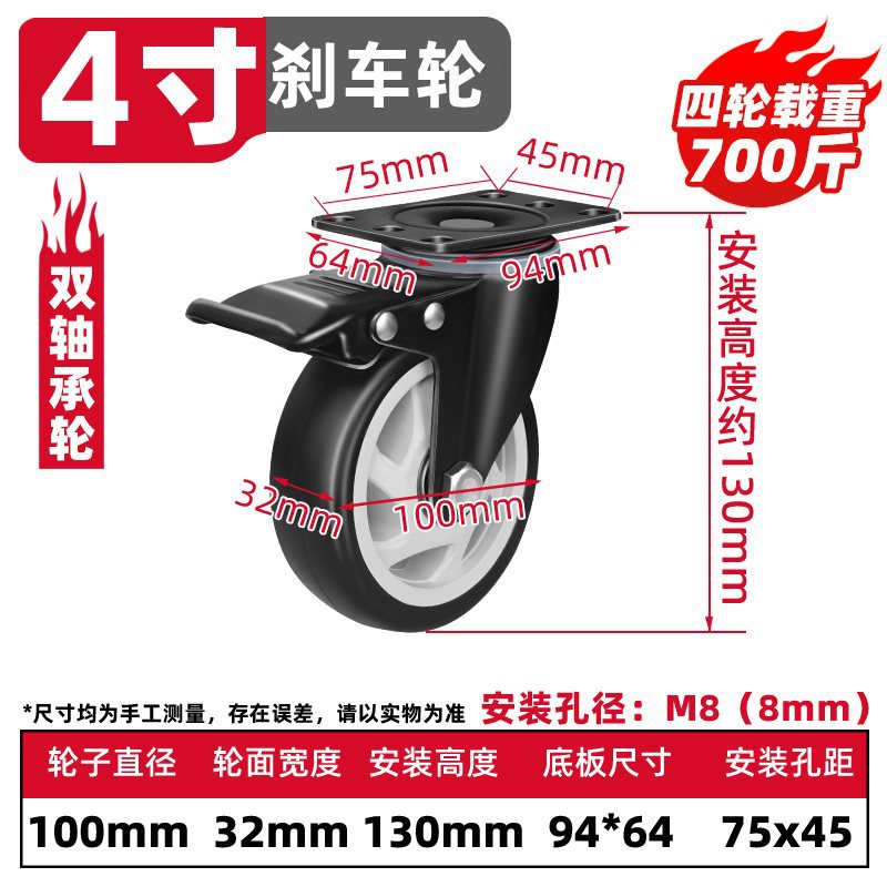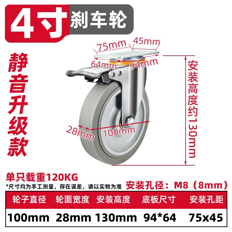 • 4inch 고무 범용 휠(브레이크 포함)(조용한 업그레이드)