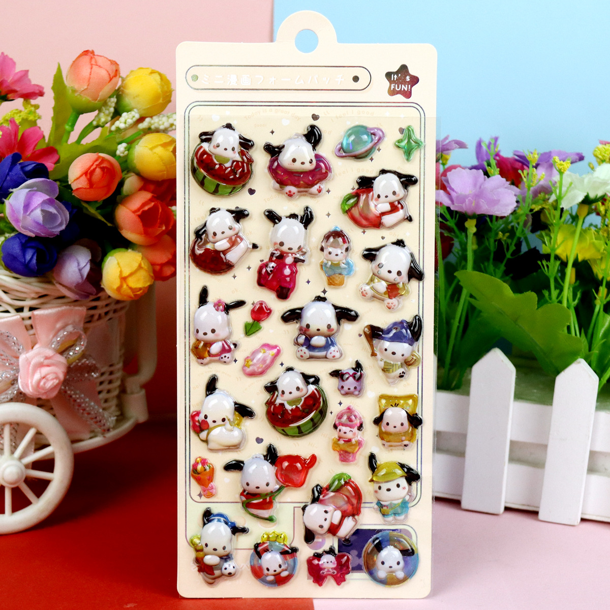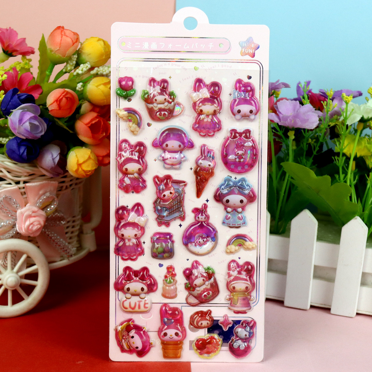 스티커 어린이용 산리오 쿠로미 스티치 3D 입체 크리스탈 에폭시 레진 입체 만화 동물 팬더 스티커스토어 가기