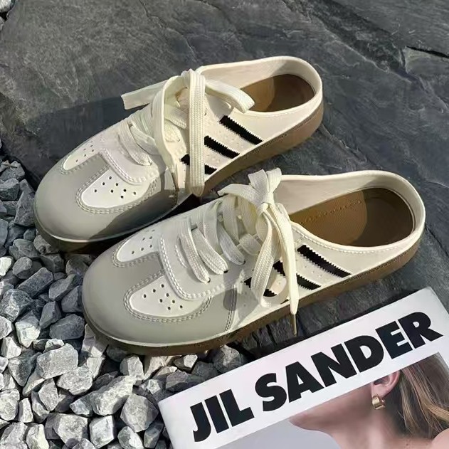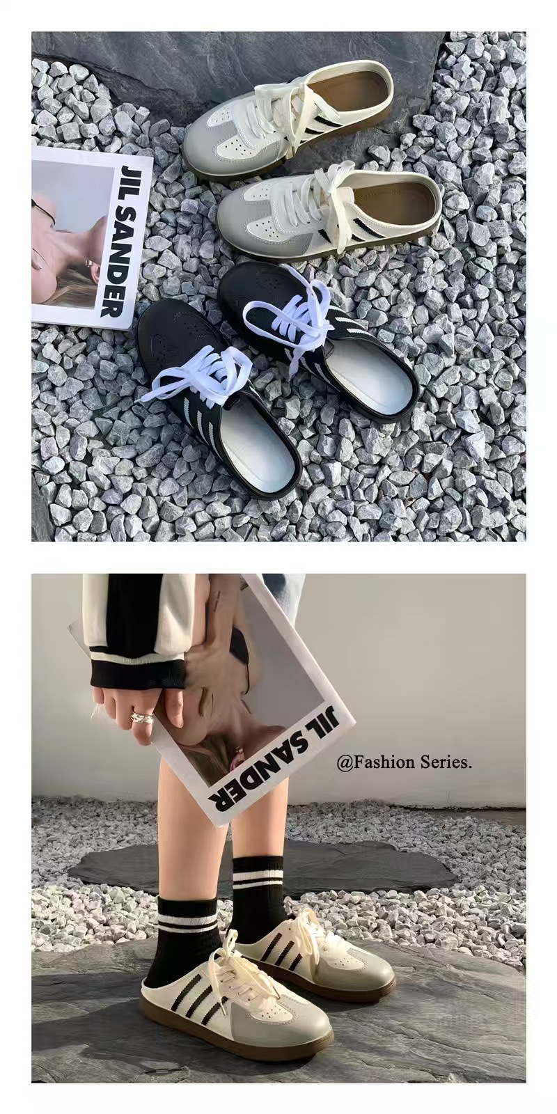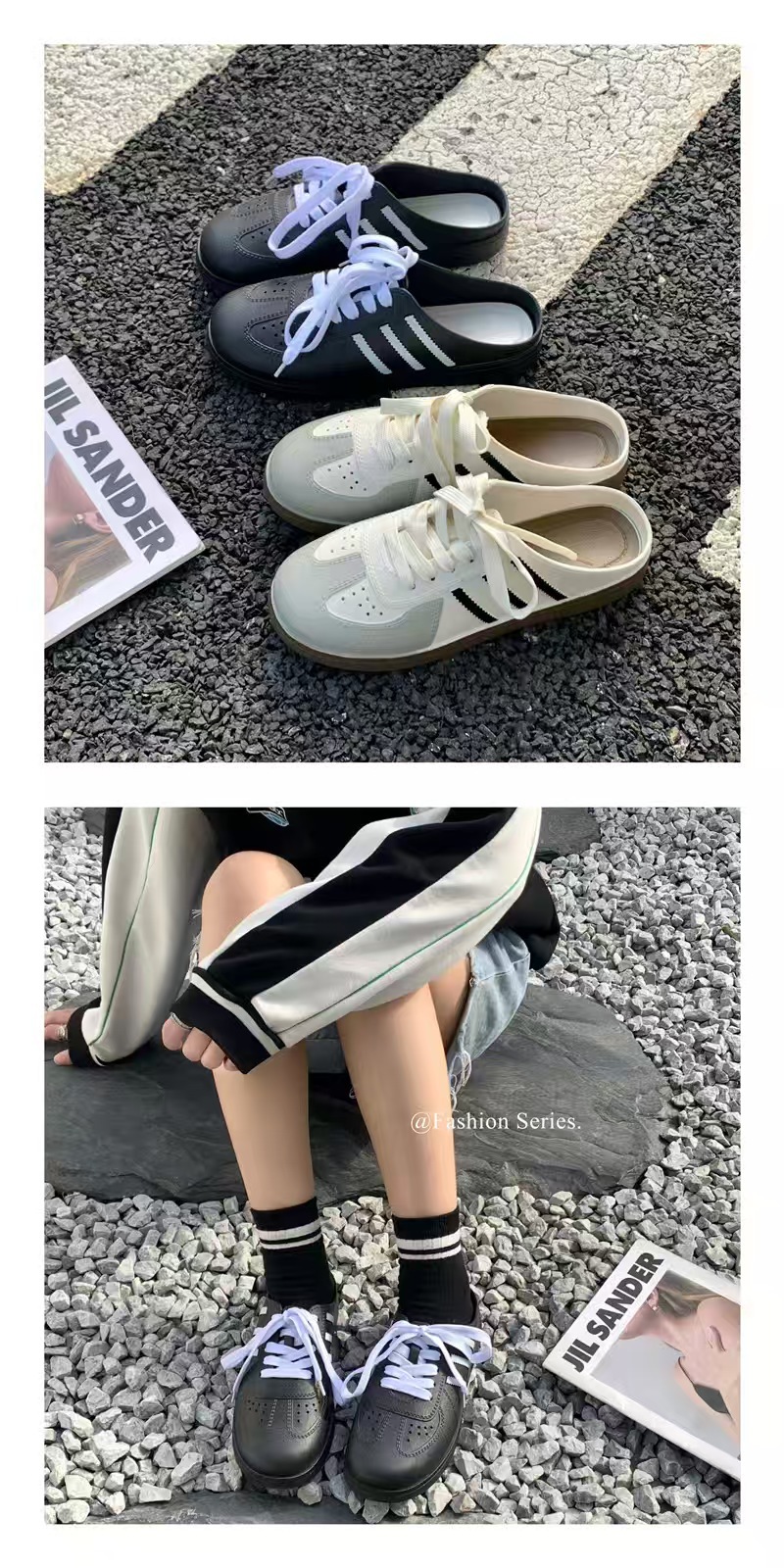 Baotou 하프 슬리퍼 여성 여름 아우터 착용 2025 새로운 빈티지 독일 트레이닝 슈즈 힐 프리 슬립 온 게으른 플랫 샌들스토어 가기