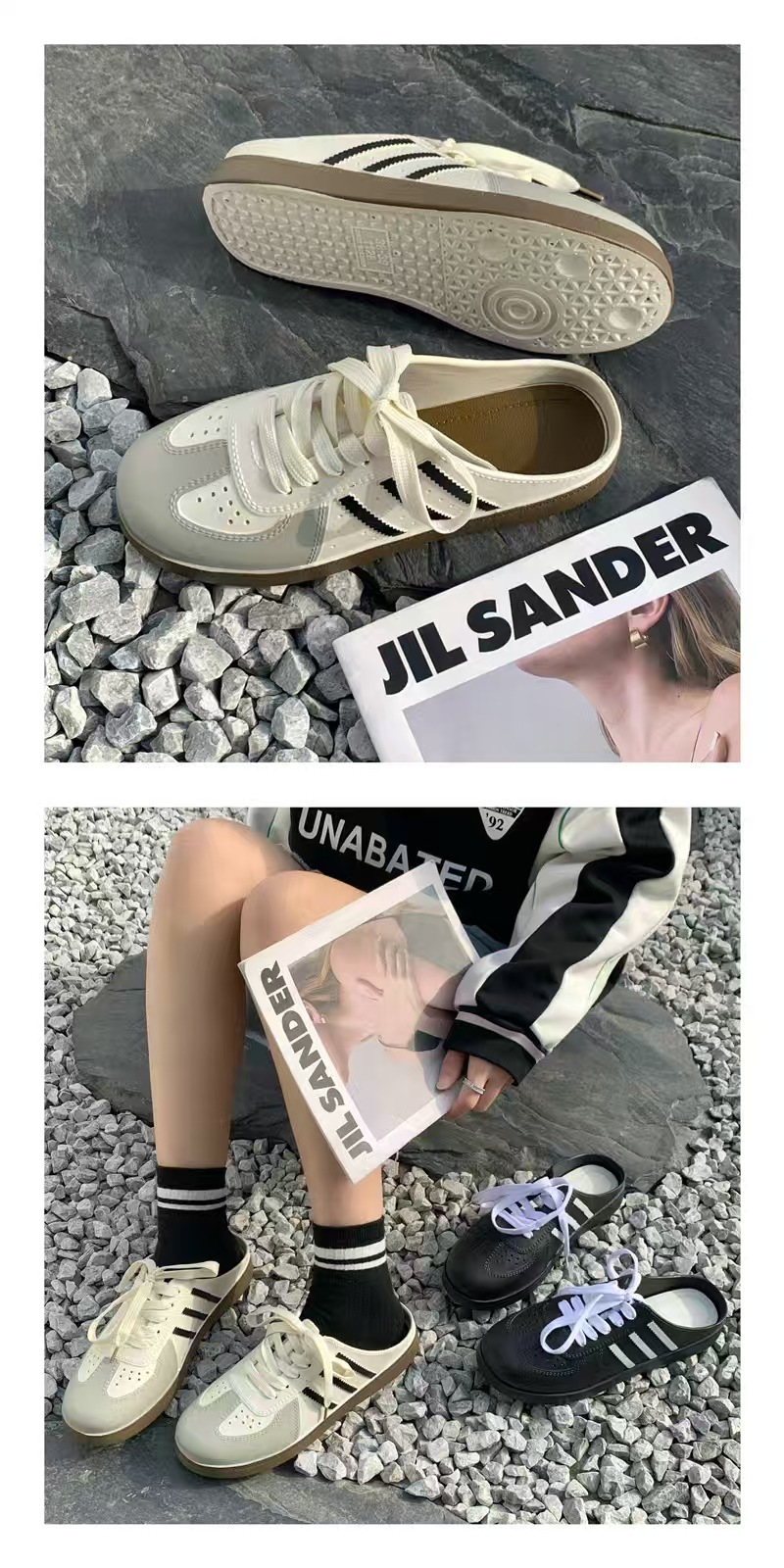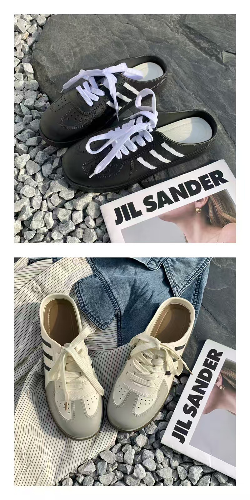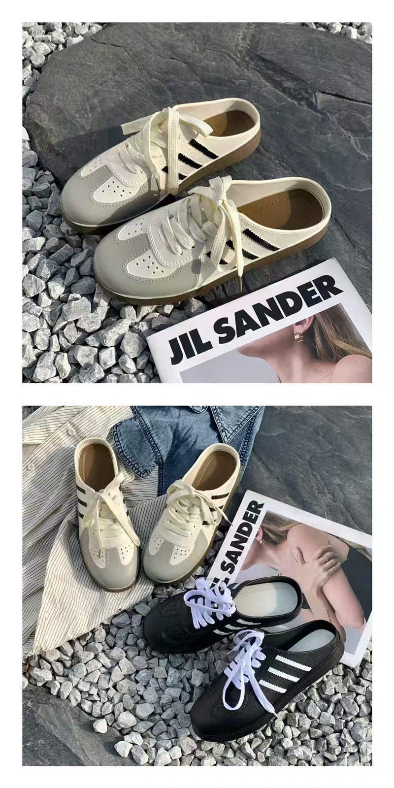Baotou 하프 슬리퍼 여성 여름 아우터 착용 2025 새로운 빈티지 독일 트레이닝 슈즈 힐 프리 슬립 온 게으른 플랫 샌들