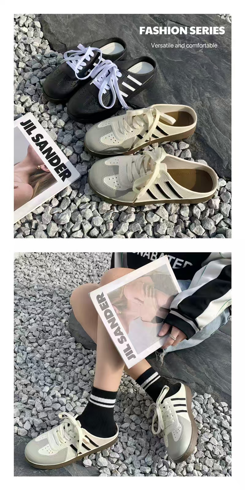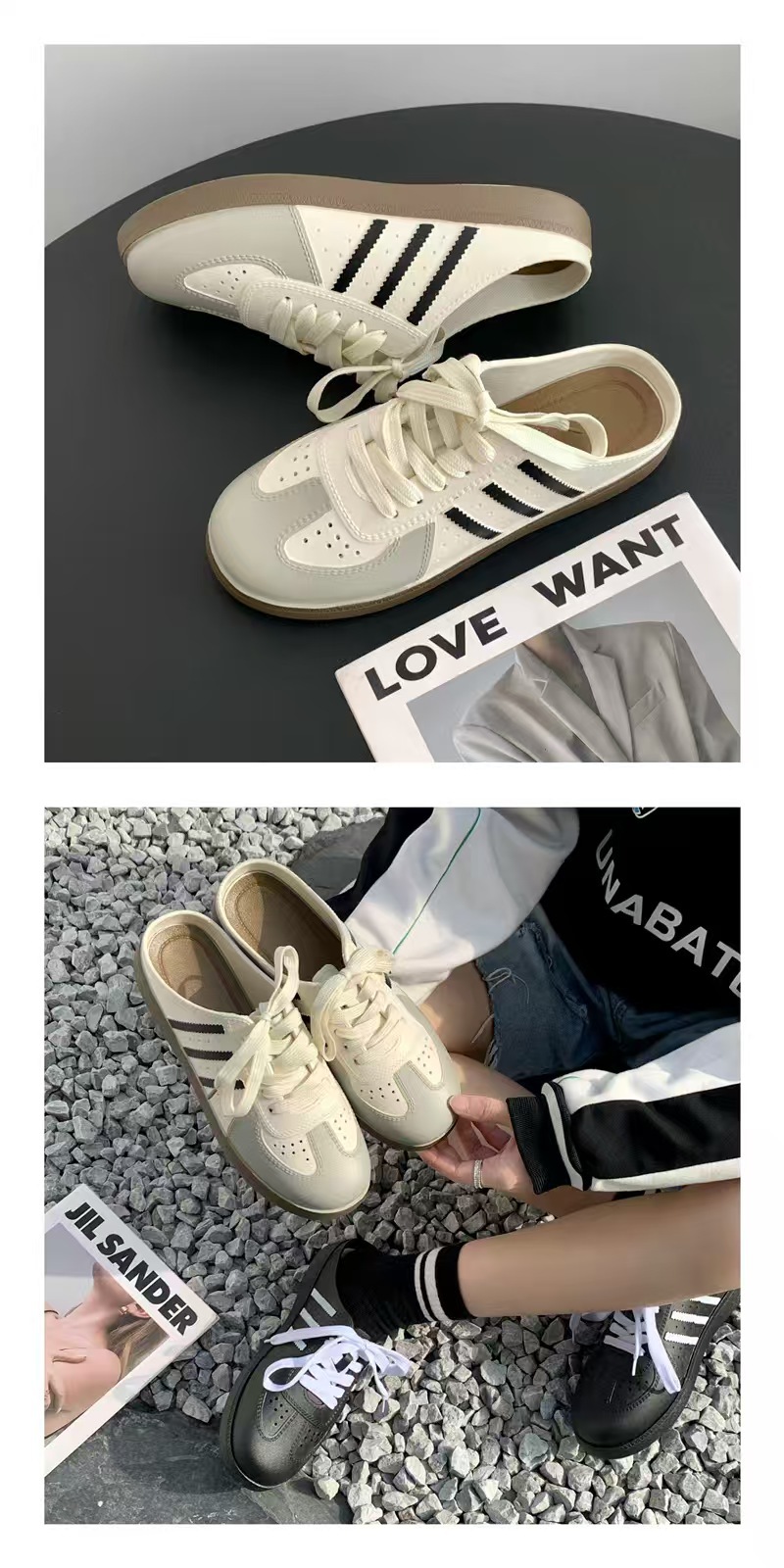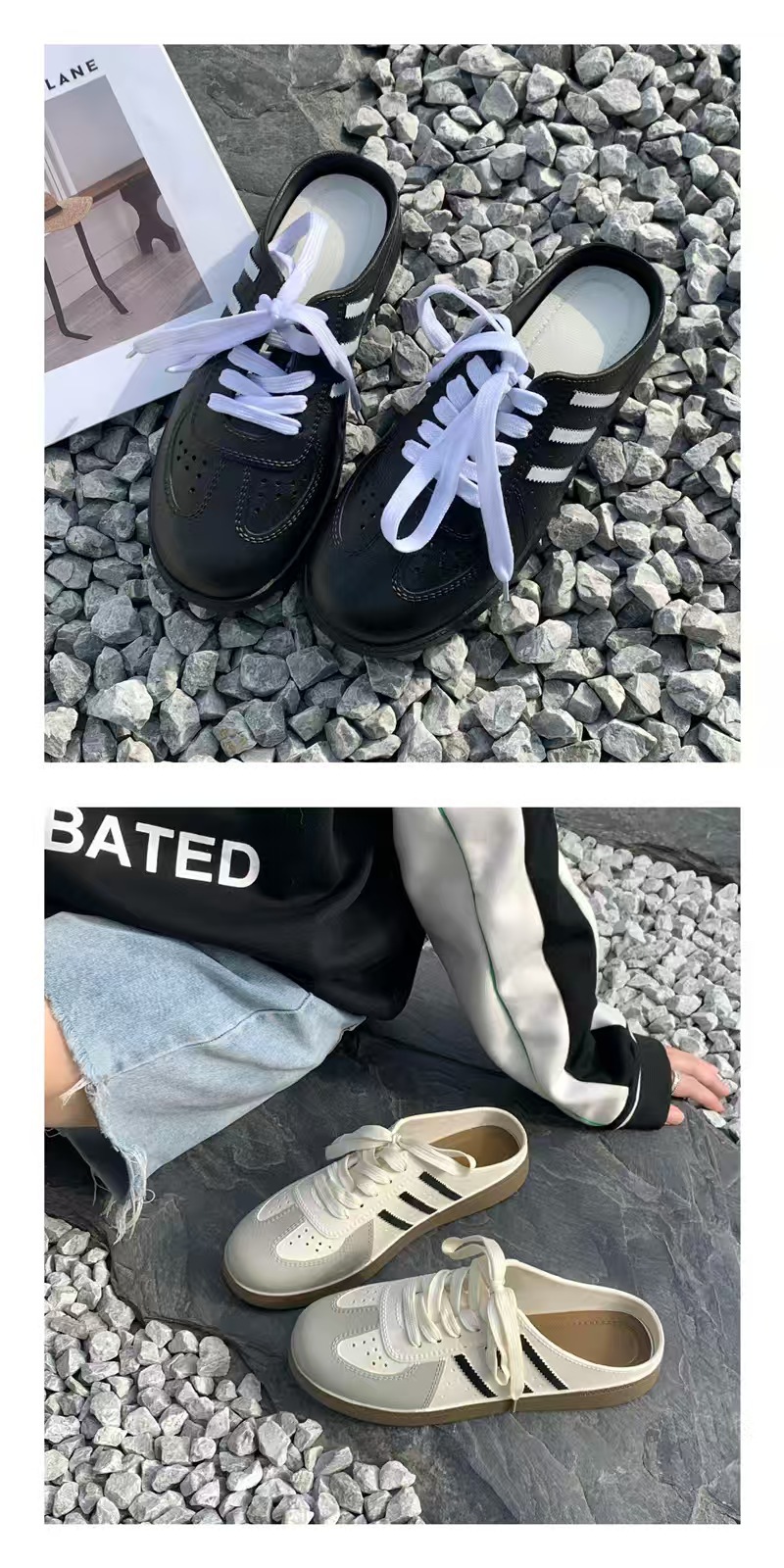 Baotou 하프 슬리퍼 여성 여름 아우터 착용 2025 새로운 빈티지 독일 트레이닝 슈즈 힐 프리 슬립 온 게으른 플랫 샌들