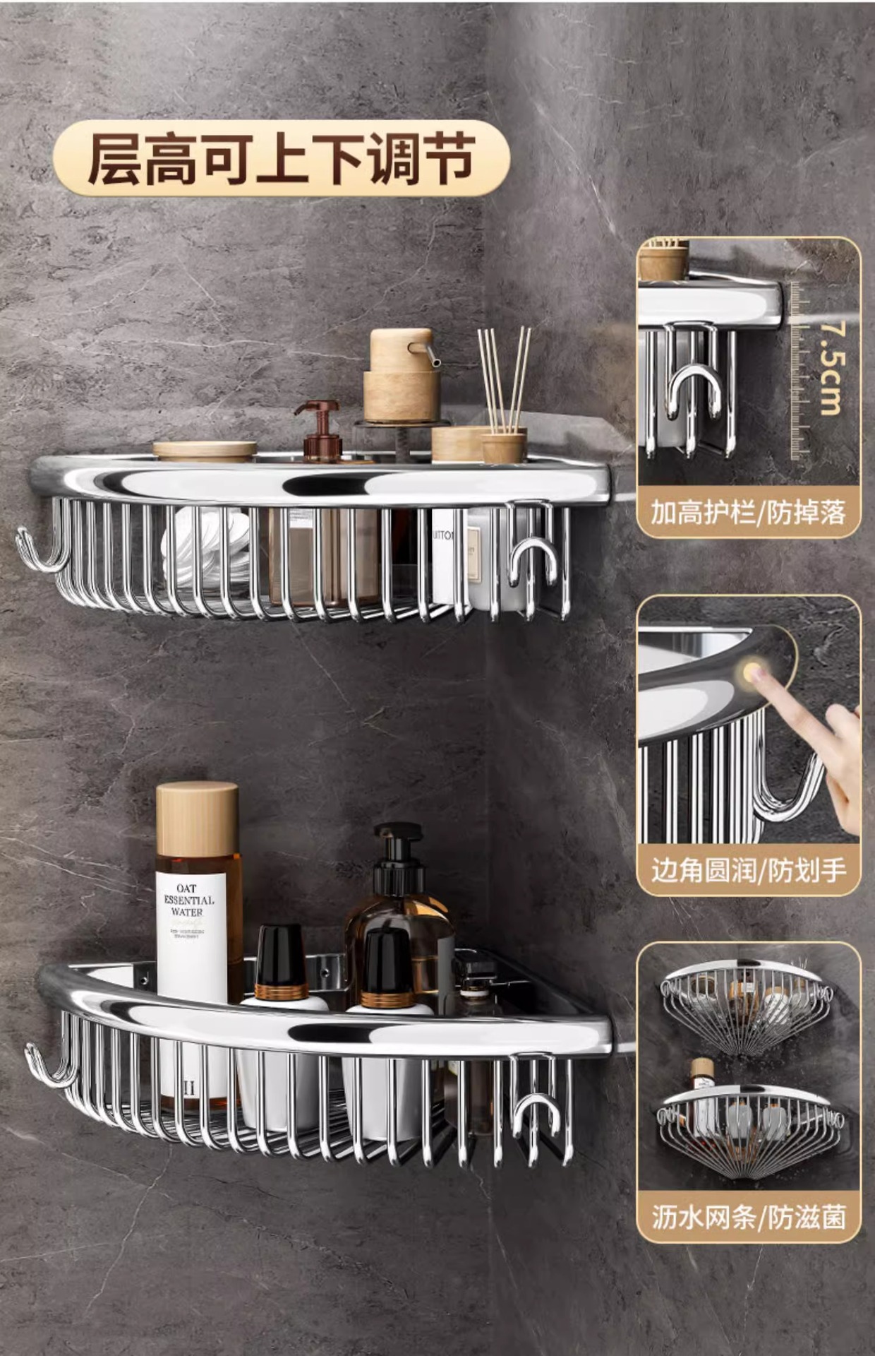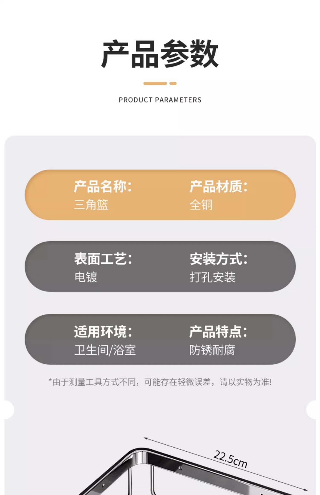 모든 구리 삼각형 바구니 욕실 보관 랙 펀치 프리 화장실 샤워 룸 화장실 코너 샤워 젤 보관 선반