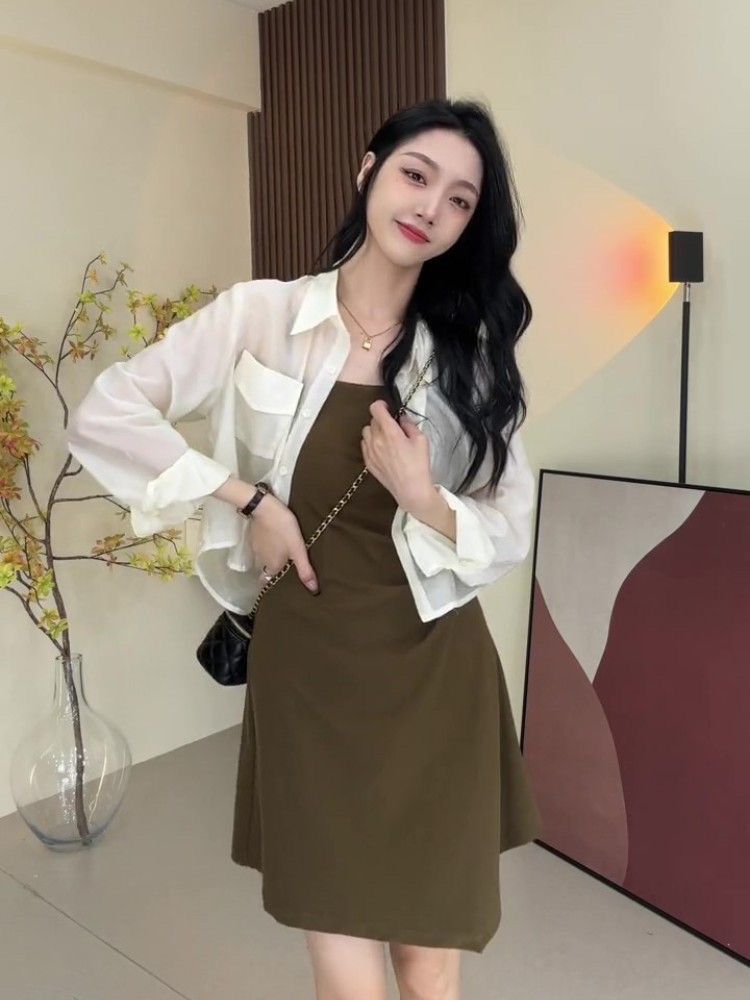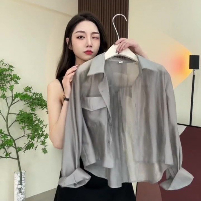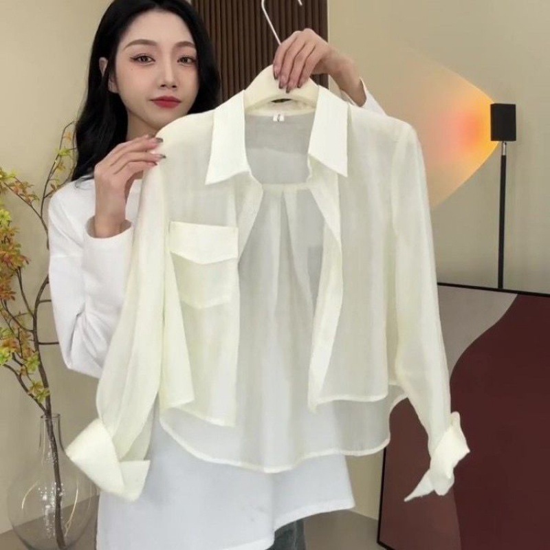 프랑스 스타일 뜨거운 소녀 인터넷 연예인 튀김 거리 캐주얼 여성 여름 긴 소매 선크림 셔츠 얇은스토어 가기