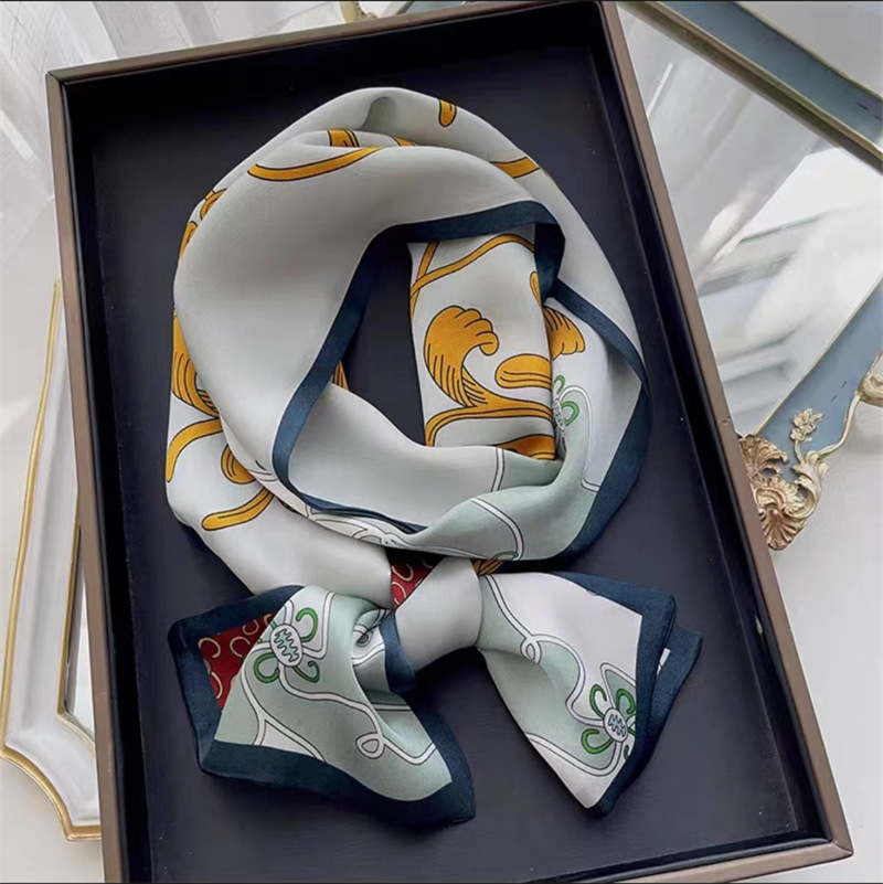 봄과 여름 작은 실크 스카프 여성 한국 스타일의 긴 다용도 장식 따뜻한 실크 꽃 스카프 선물 스카프 제조 업체