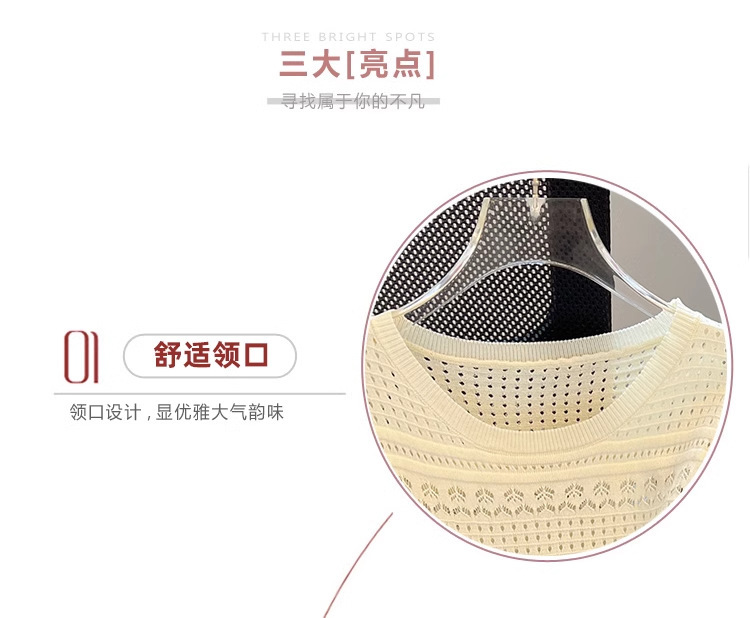 2024 새로운 아이스 실크 니트 스웨터 여성 화이트 여름 라운드 넥 샤넬 빈 반팔 셔츠 얇은 풀오버 탑스토어 가기