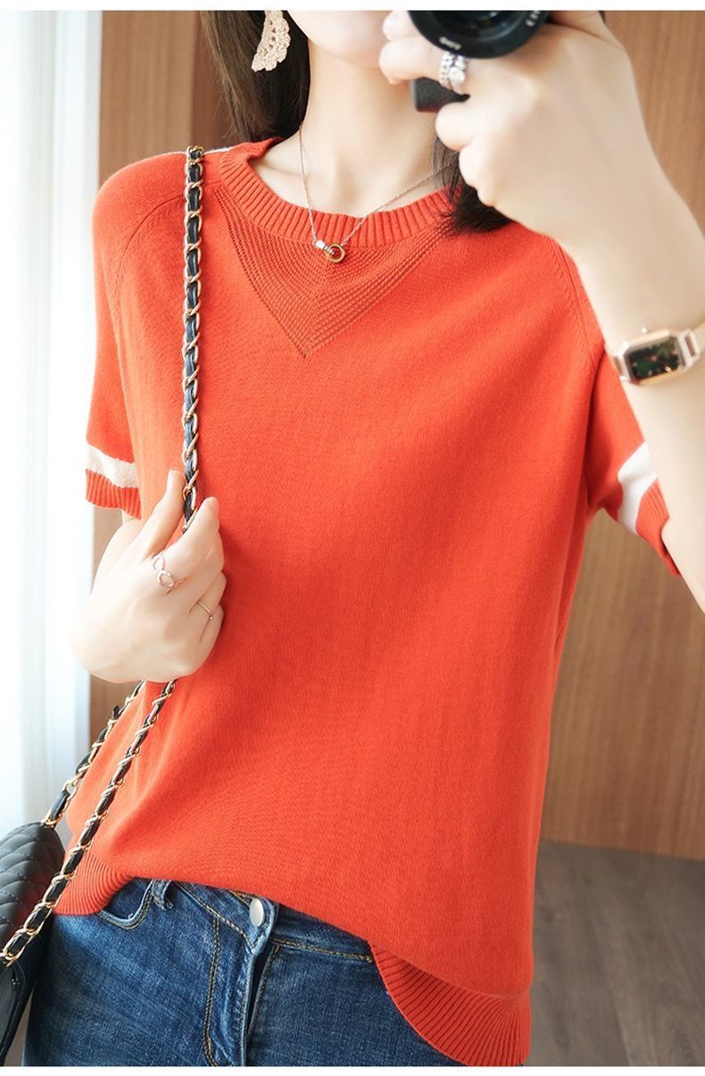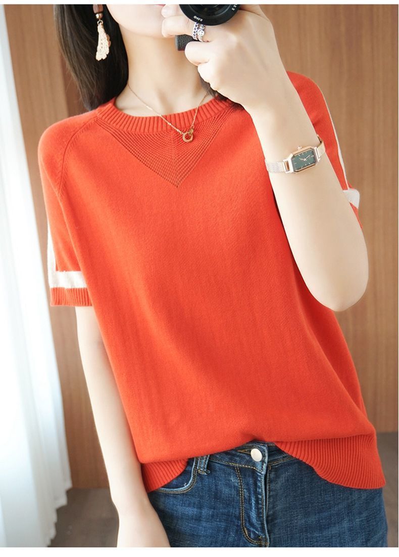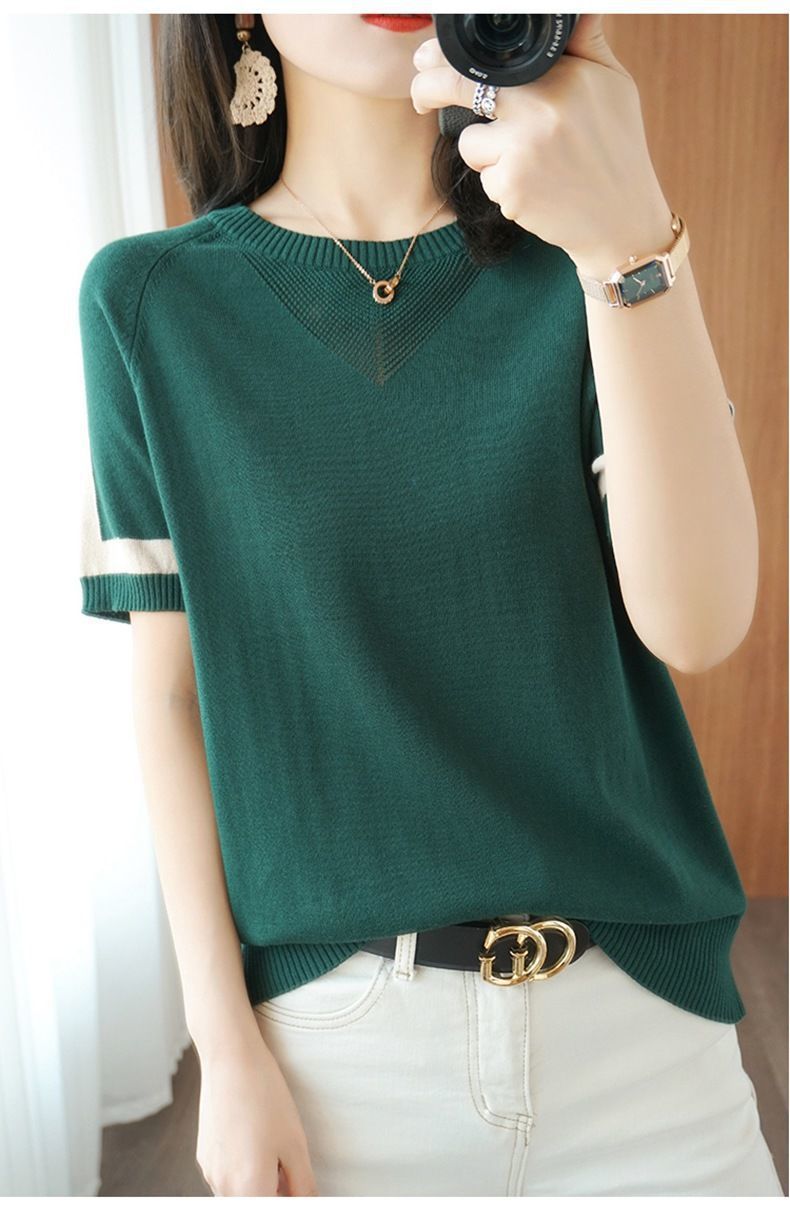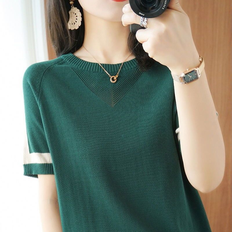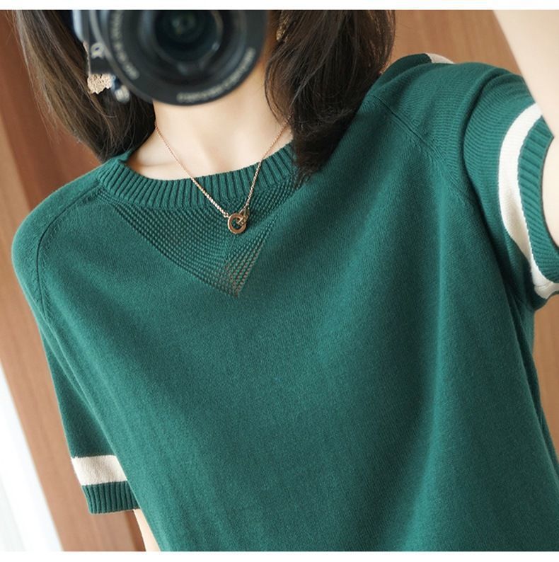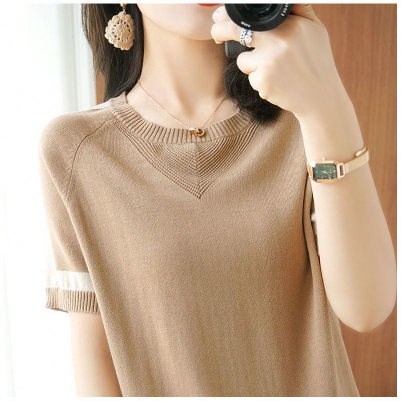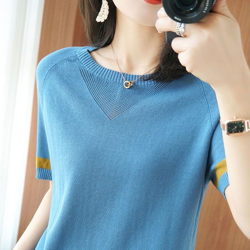 200kg 웨어러블 플러스 사이즈 아이스 실크 반팔 셔츠 여성용 한국어 버전의 느슨한 컬러 매칭 재킷 새로운 중공 외국 스타일 스웨터스토어 가기