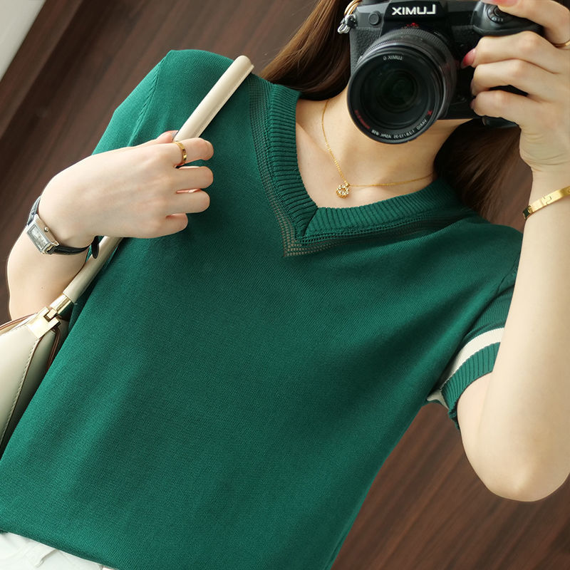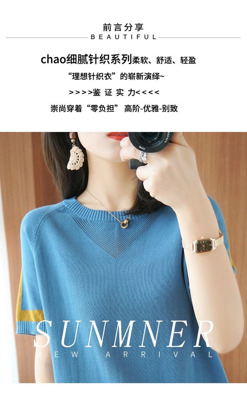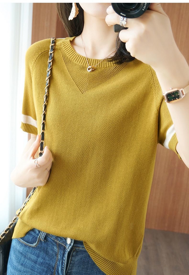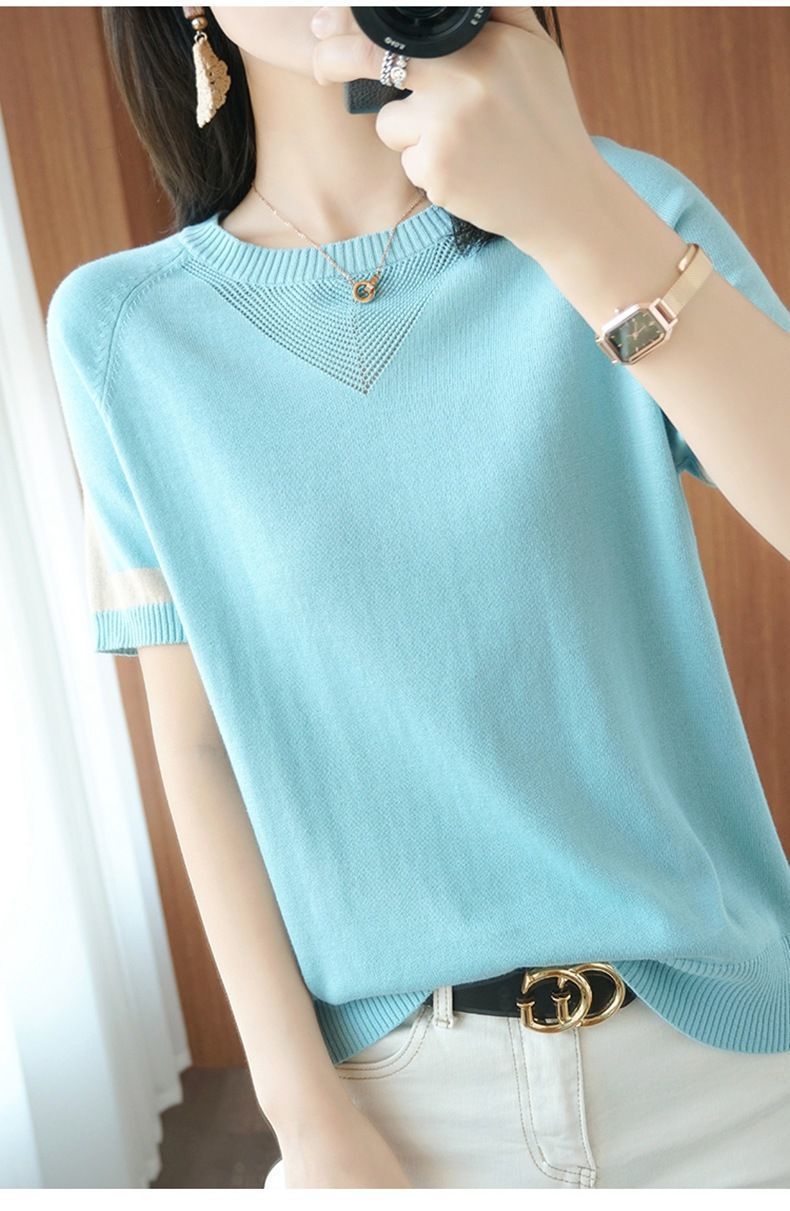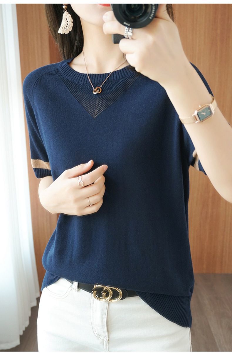 200kg 웨어러블 플러스 사이즈 아이스 실크 반팔 셔츠 여성용 한국어 버전의 느슨한 컬러 매칭 재킷 새로운 중공 외국 스타일 스웨터스토어 가기