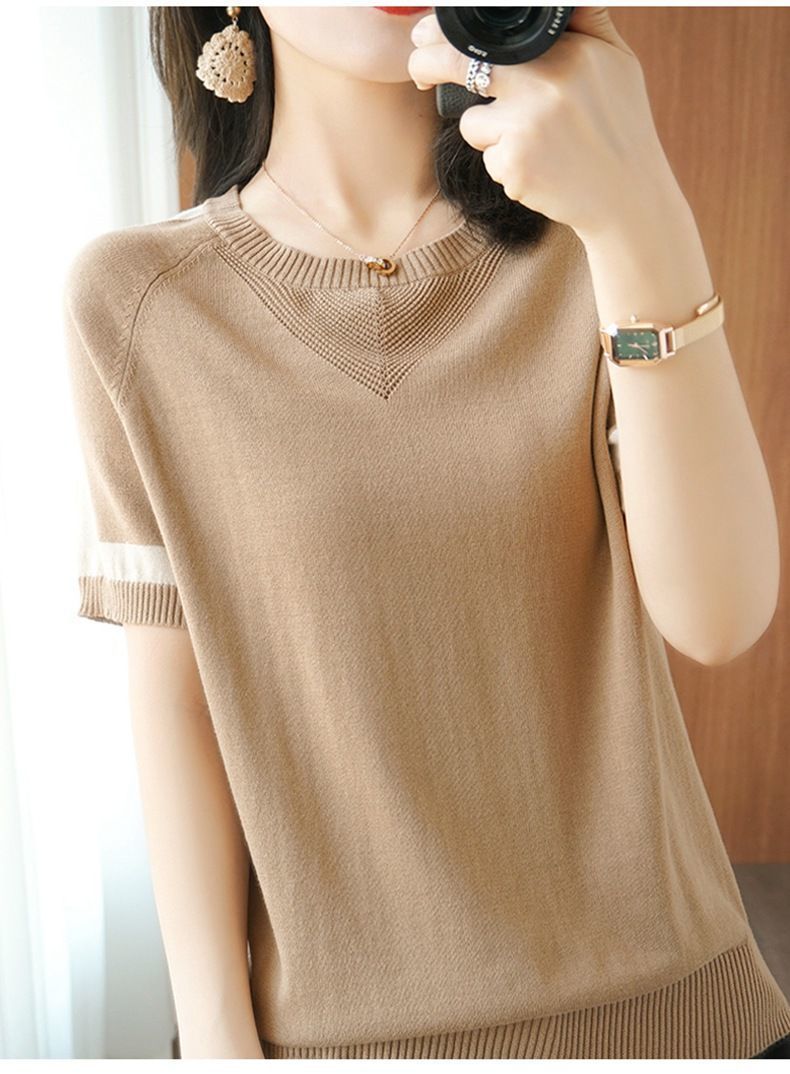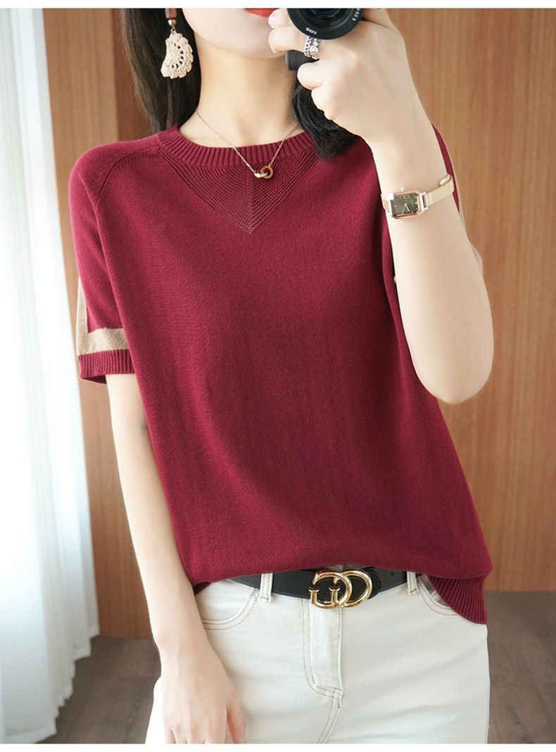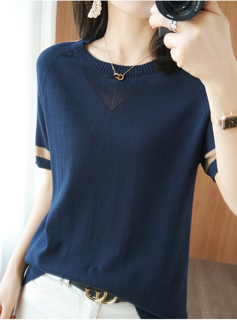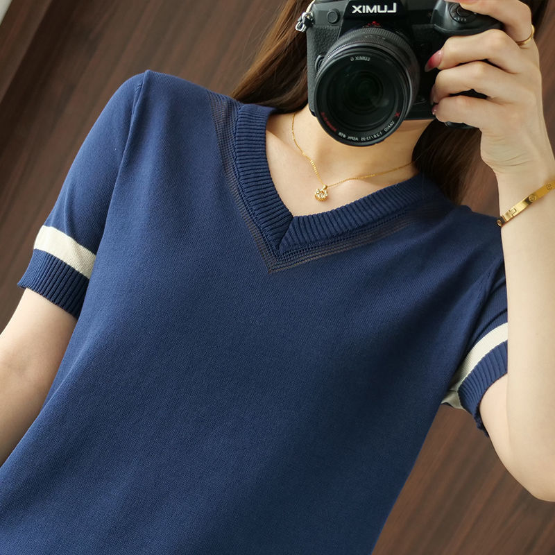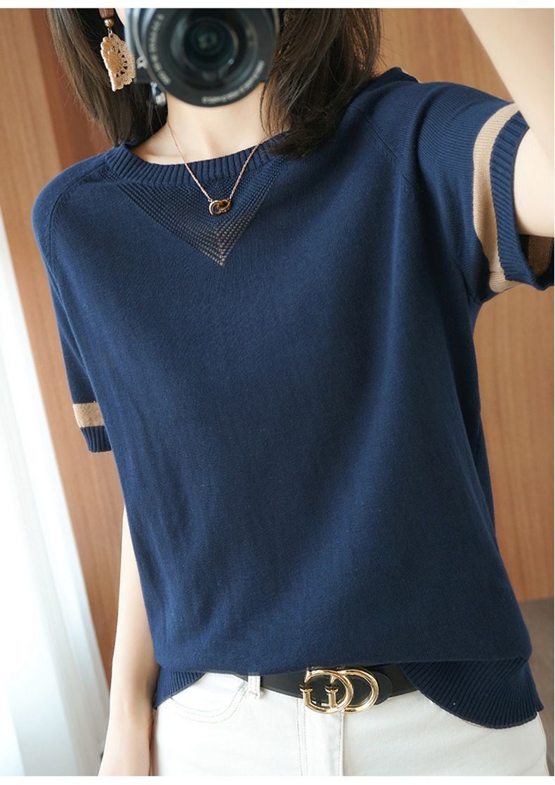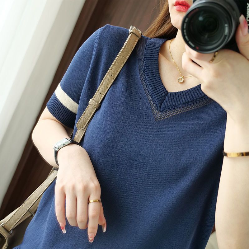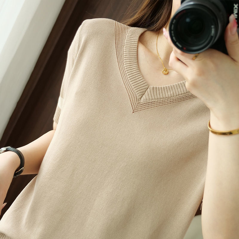 200kg 웨어러블 플러스 사이즈 아이스 실크 반팔 셔츠 여성용 한국어 버전의 느슨한 컬러 매칭 재킷 새로운 중공 외국 스타일 스웨터스토어 가기