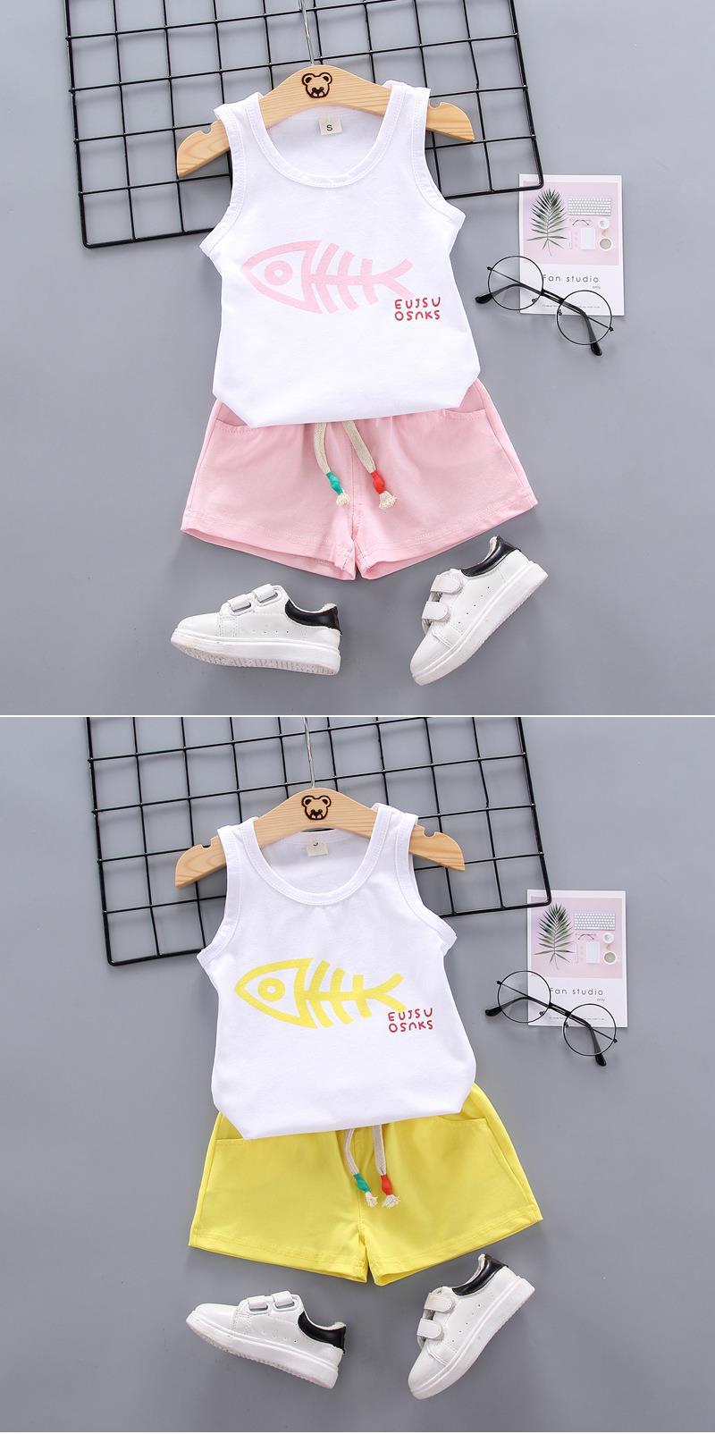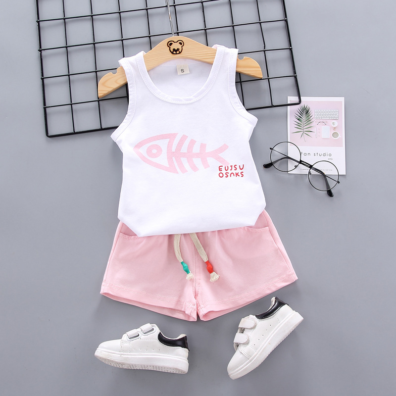 남학생과 여학생 아기 여름 옷 0-4 세 외국식 레저 민소매 어린이 조끼 투피스 세트 1-3 국경 아동복