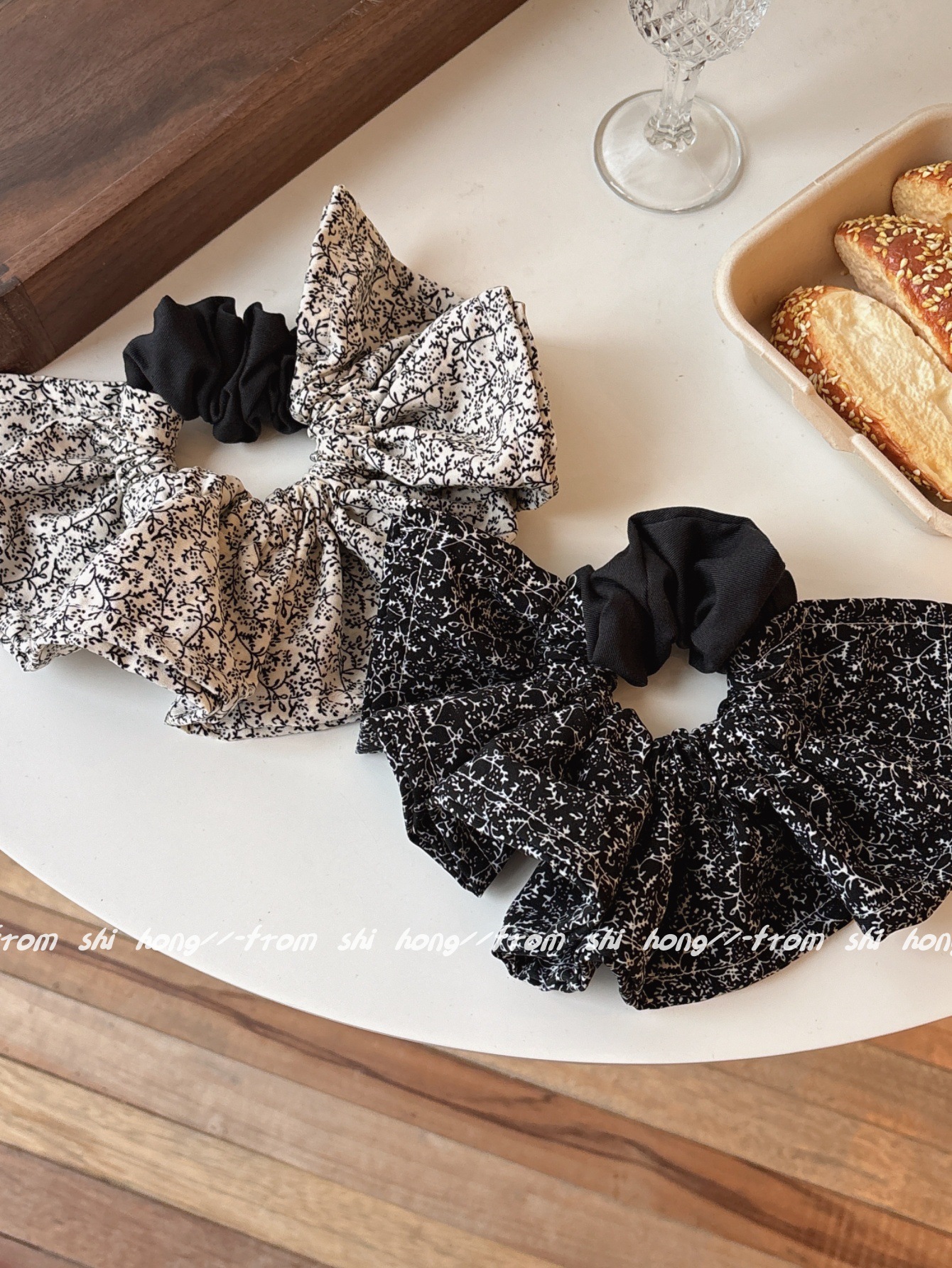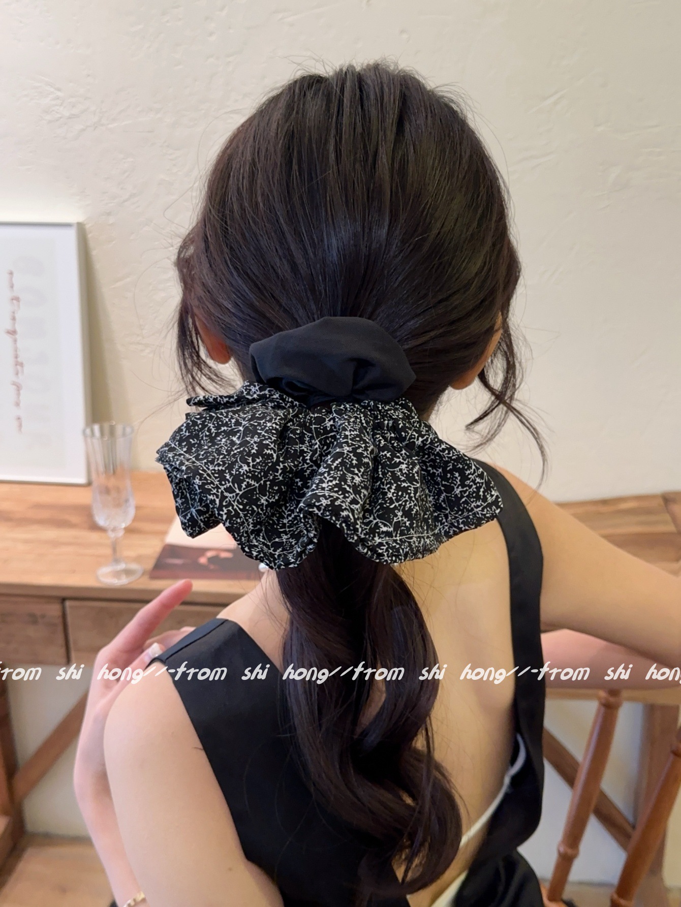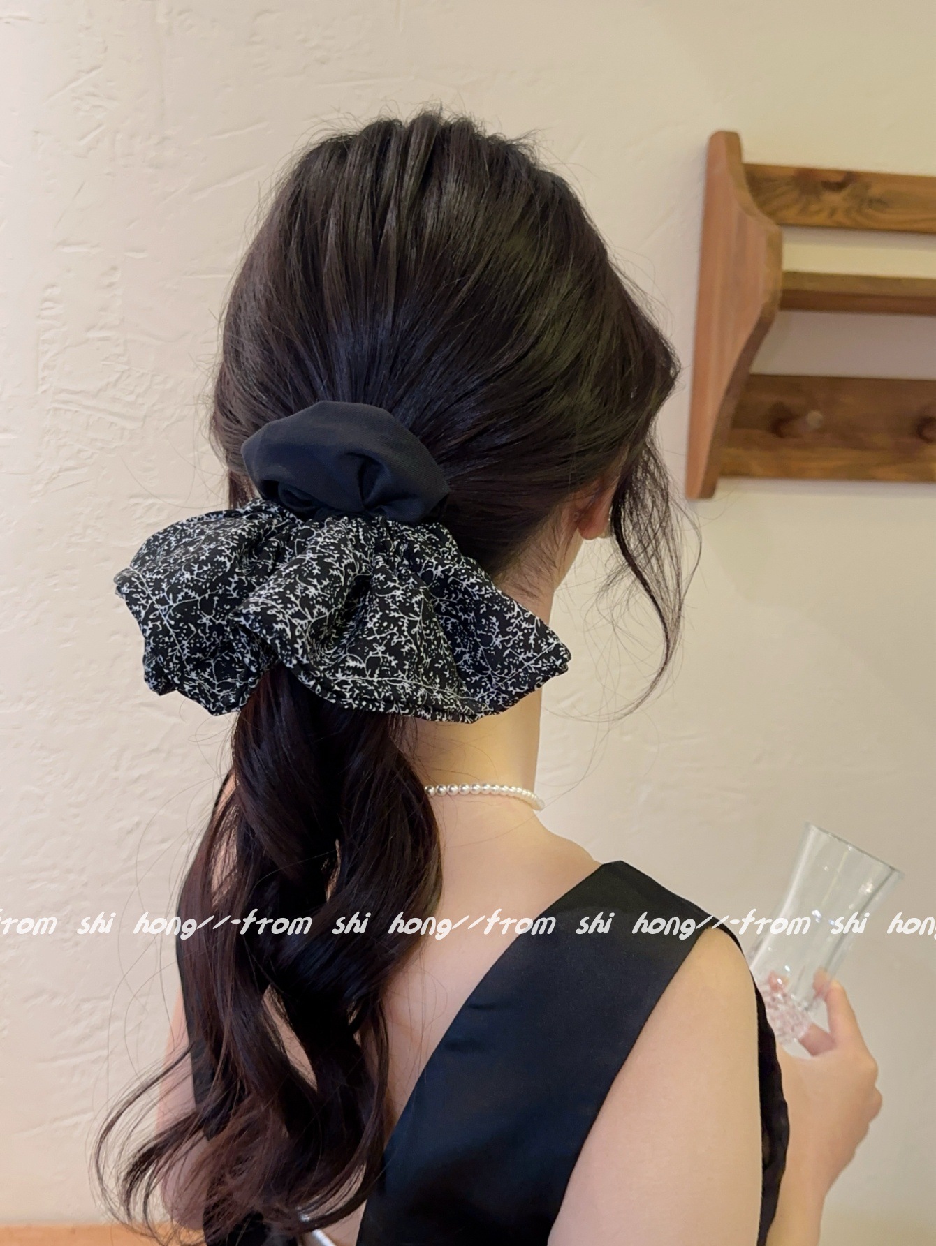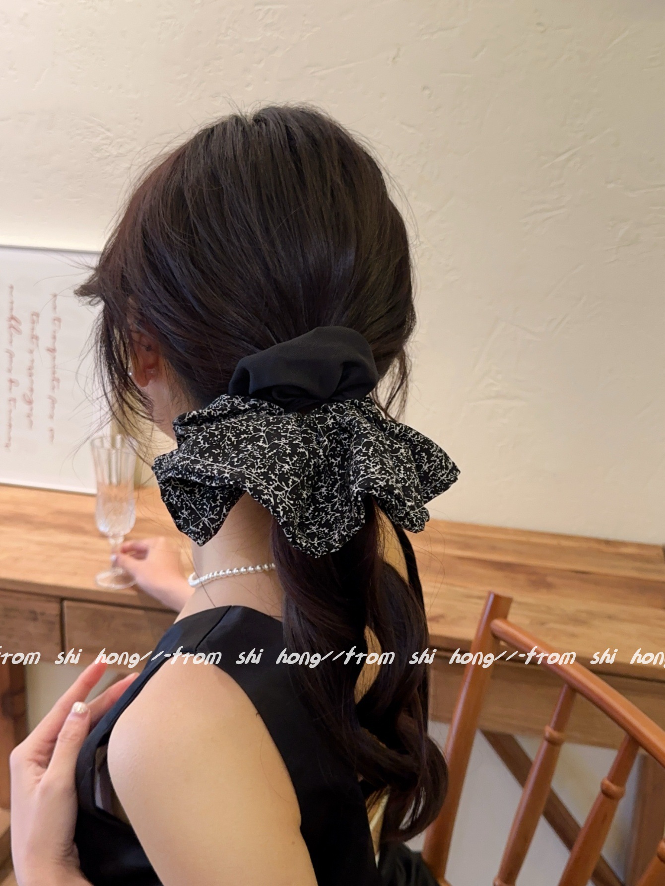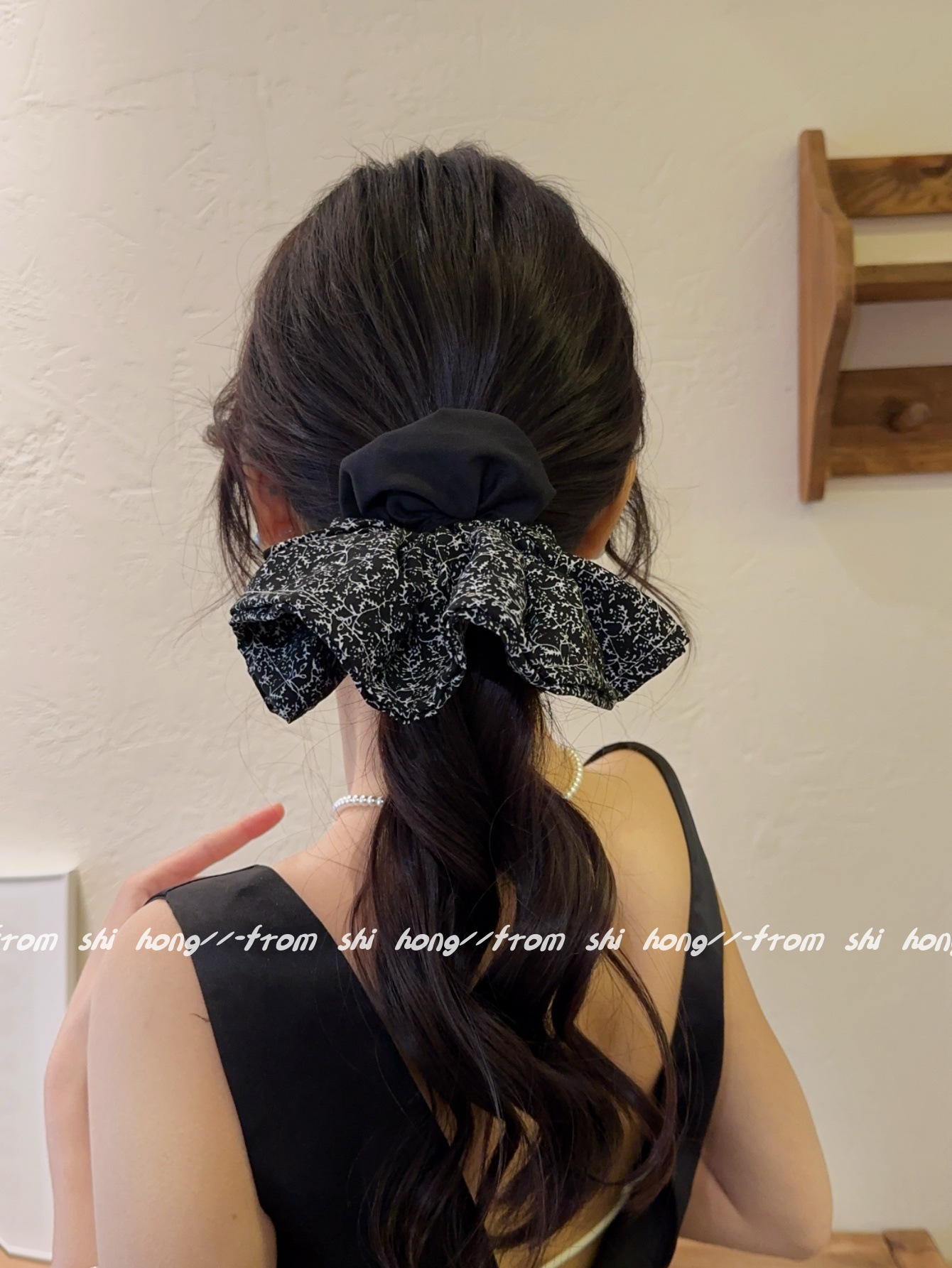 • 블랙 꽃무늬 스커트 머리끈