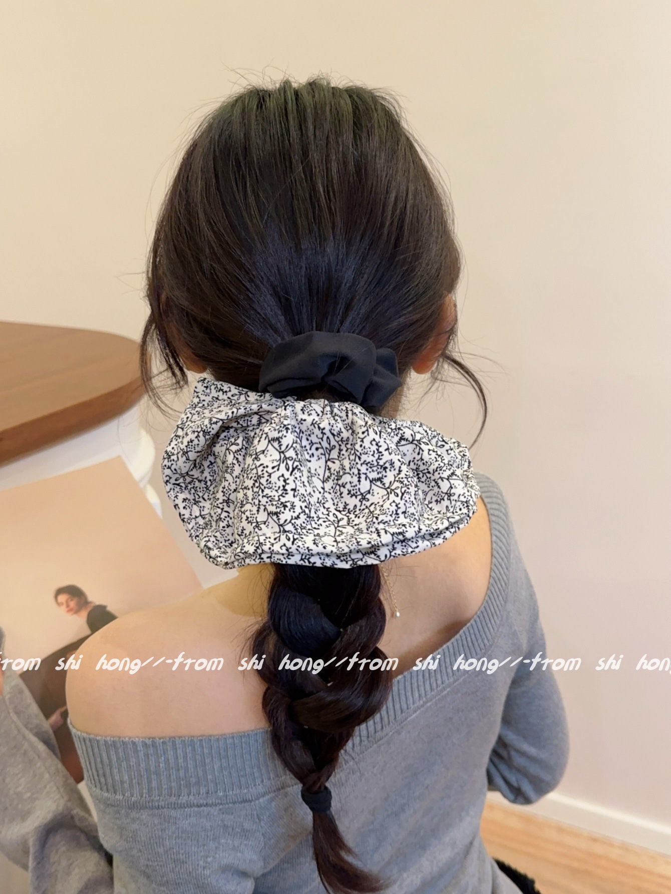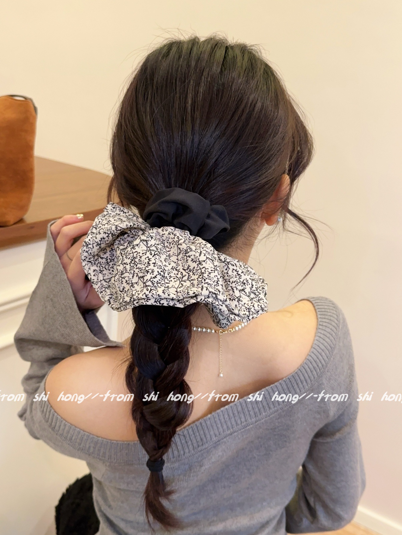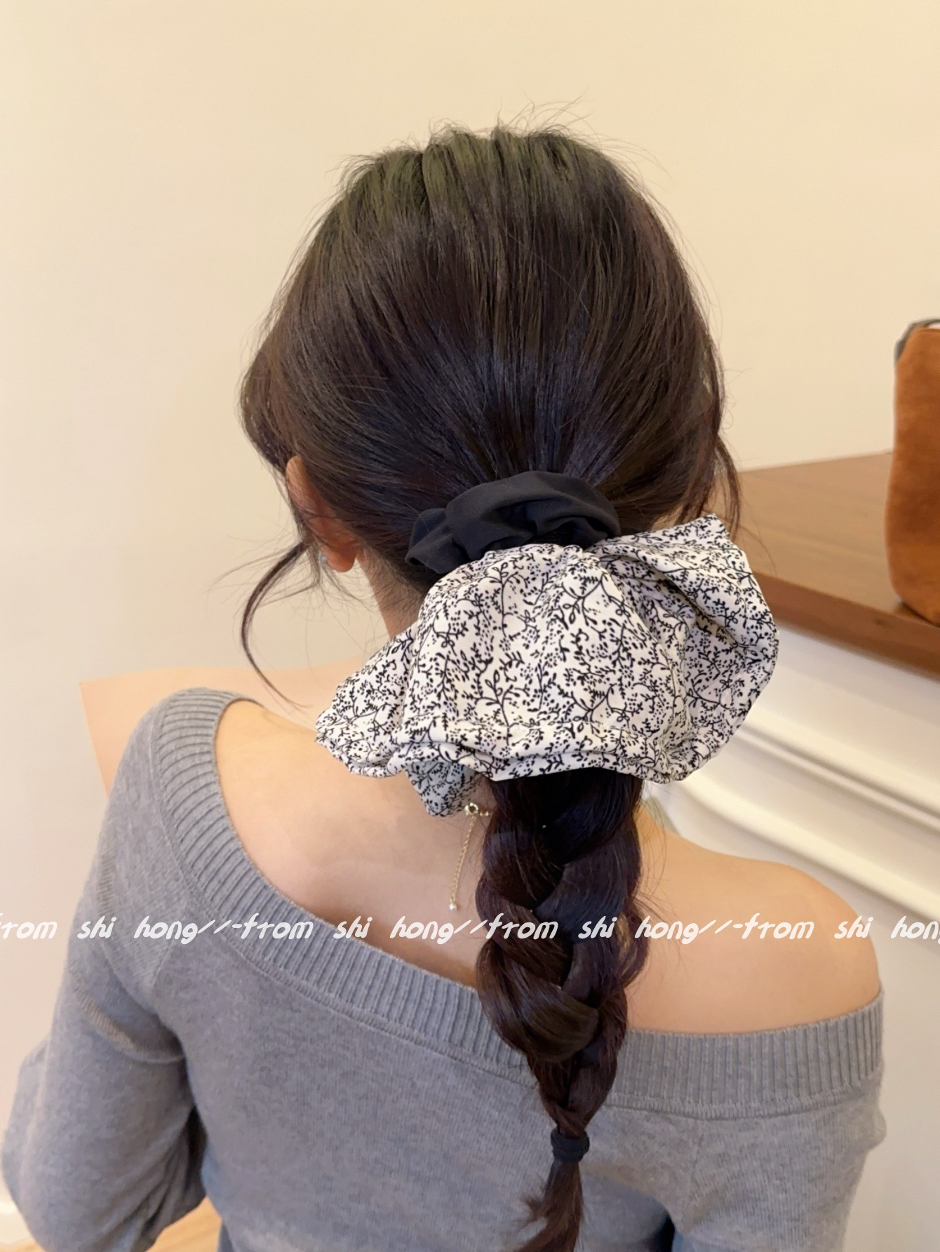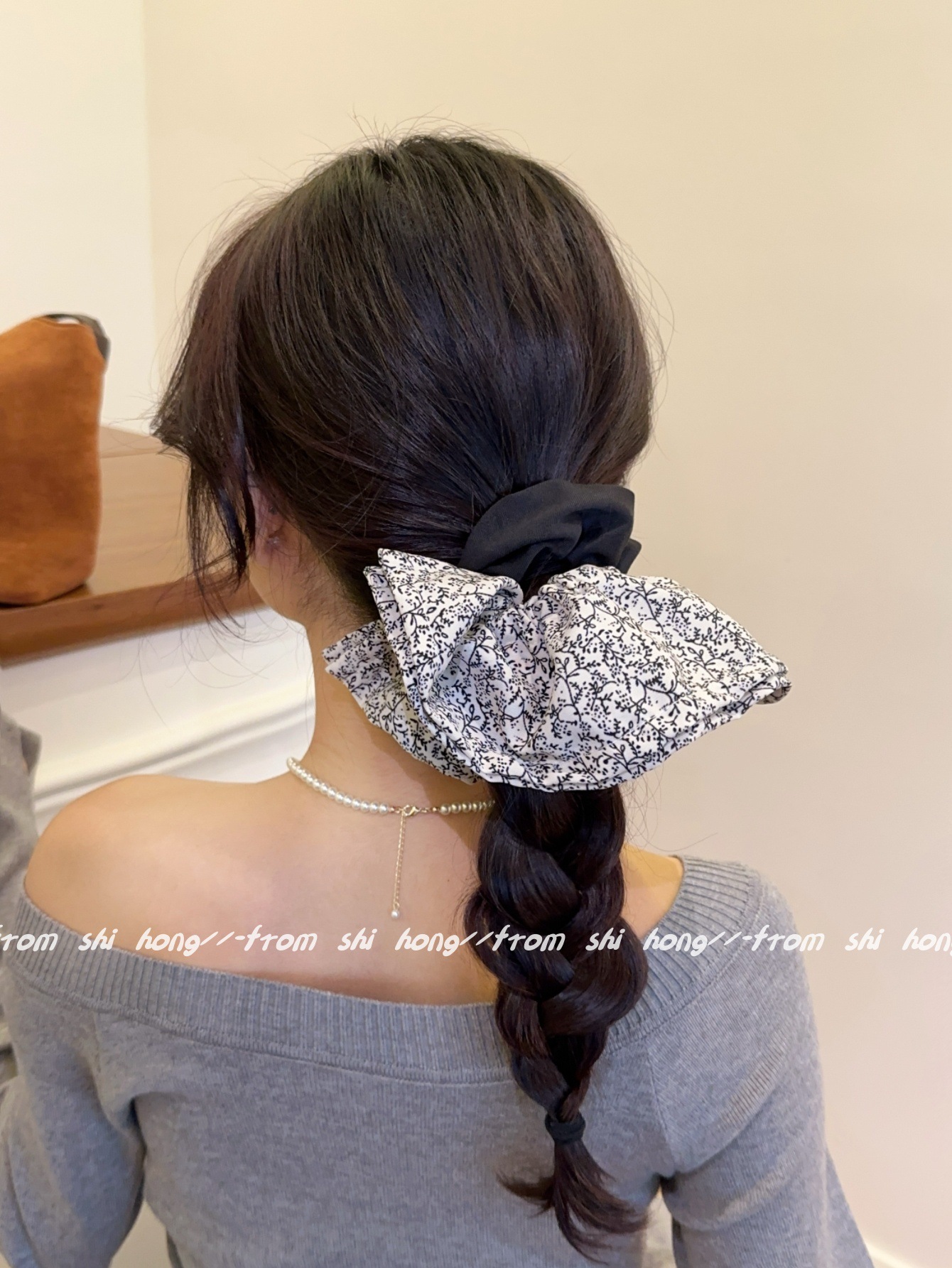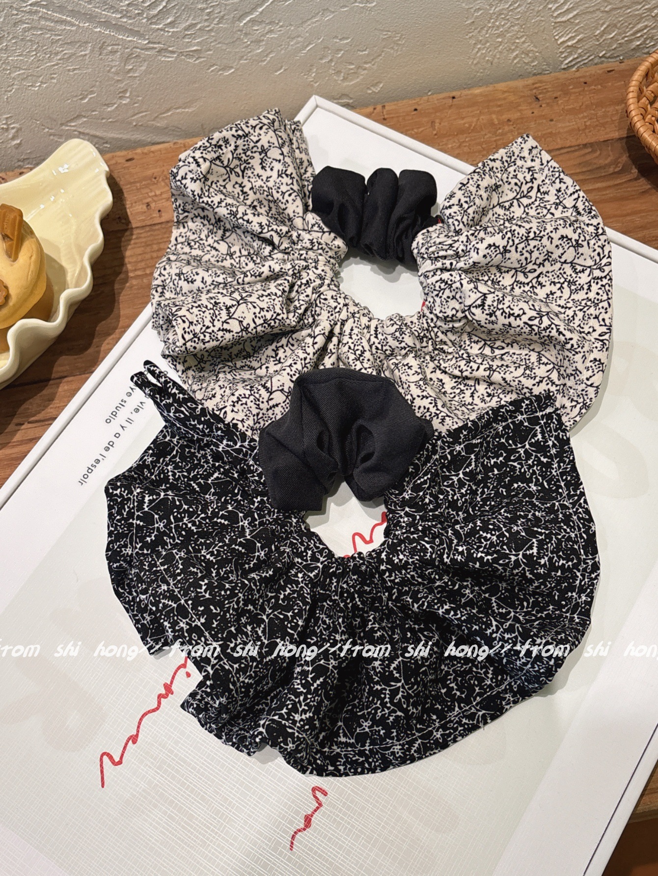 • 블랙 꽃무늬 스커트 머리끈