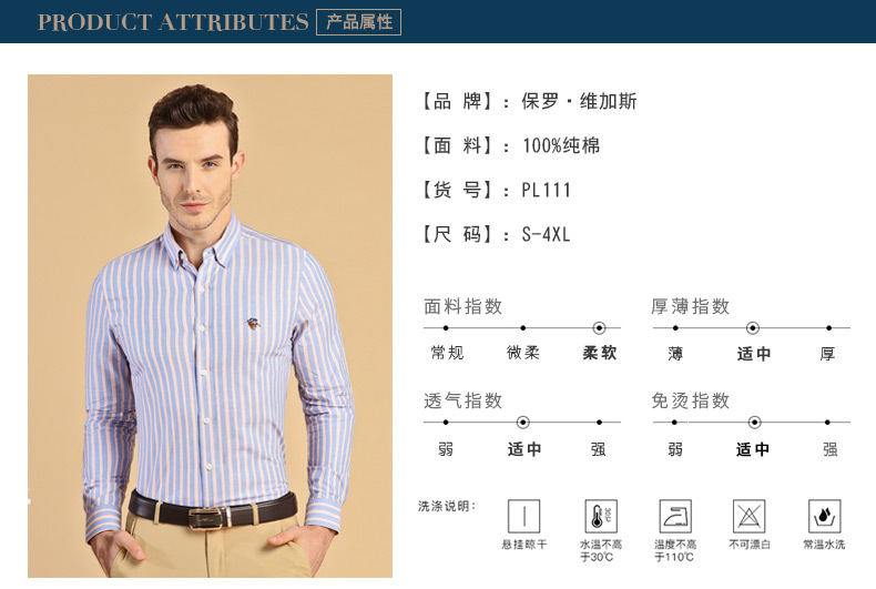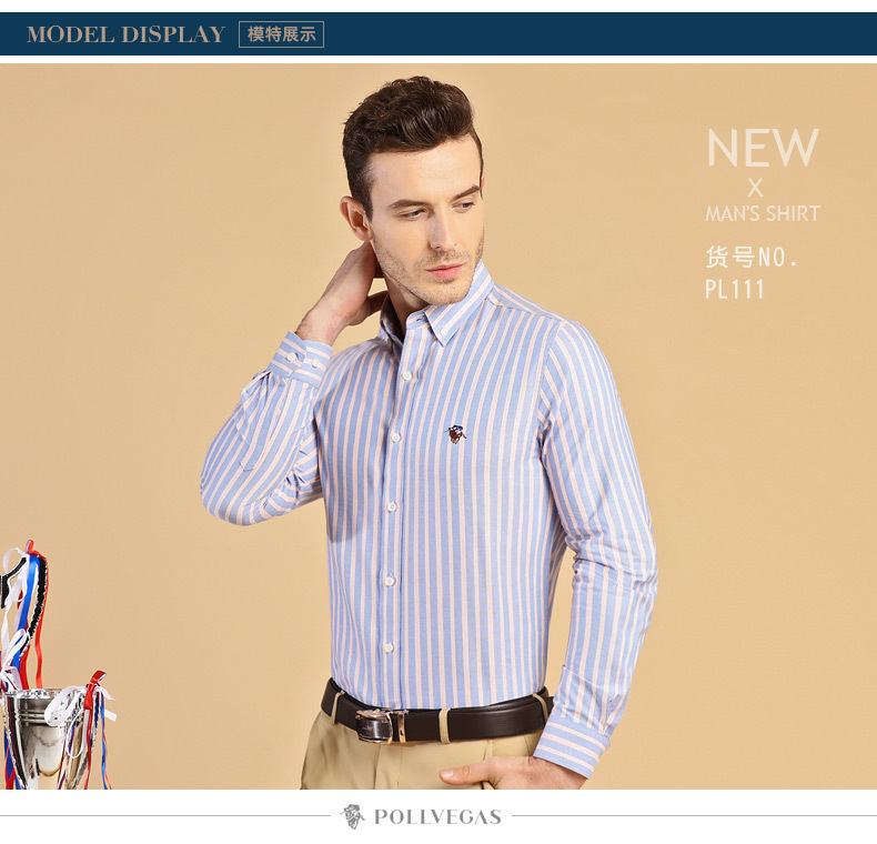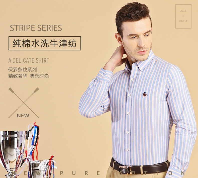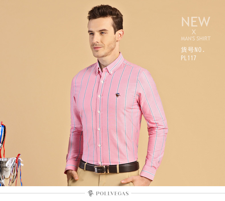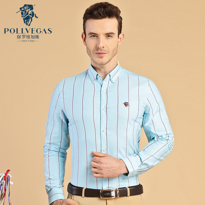 폴 남성용 긴팔 셔츠, 면 옥스포드 스트라이프 셔츠, 비즈니스 캐주얼, 주름 방지, 다림질 없이 세탁 가능한 베이스 셔츠