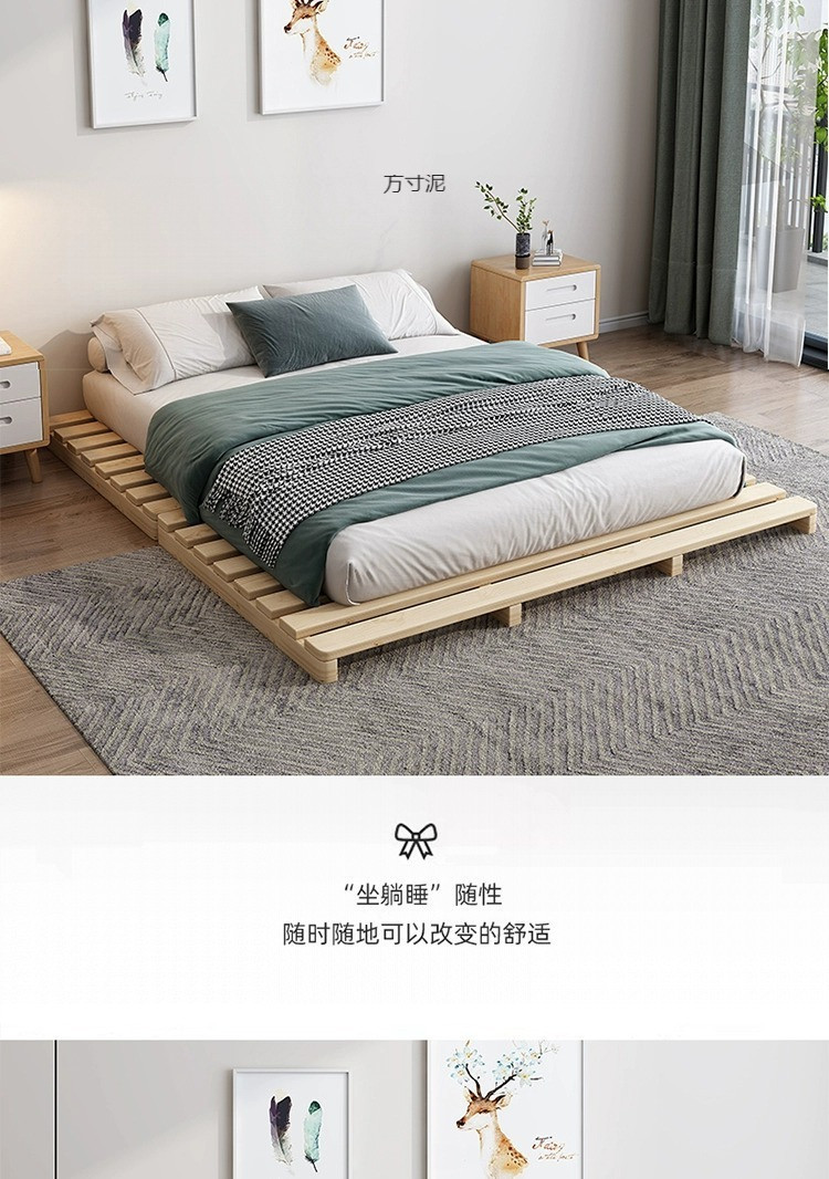 일본식 다다미 침대 선반 라이 스켈레톤 솔리드 우드 침대 바닥 침대 낮은 침대 없음 침대 헤드 렌탈 룸 홈스테이 층 침대스토어 가기