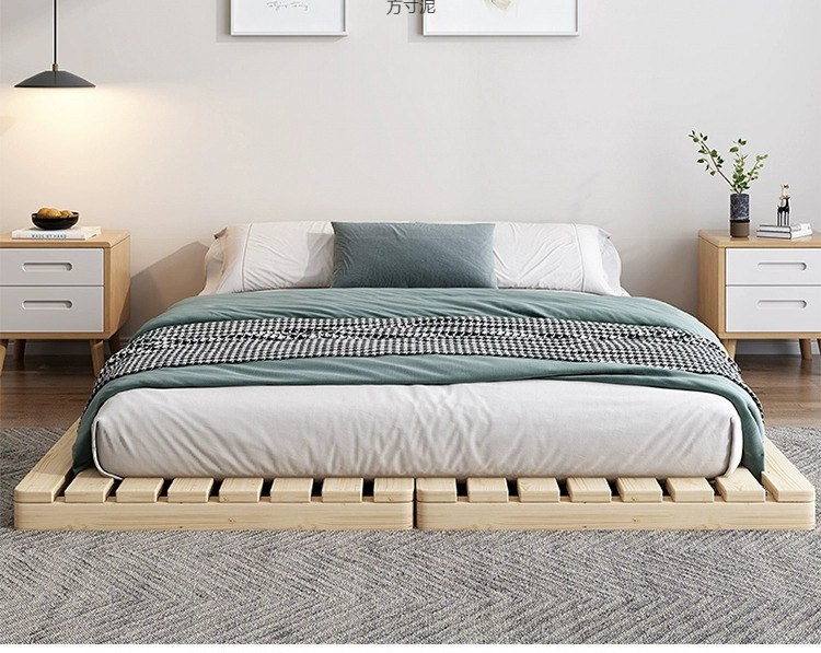 일본식 다다미 침대 선반 라이 스켈레톤 솔리드 우드 침대 바닥 침대 낮은 침대 없음 침대 헤드 렌탈 룸 홈스테이 층 침대