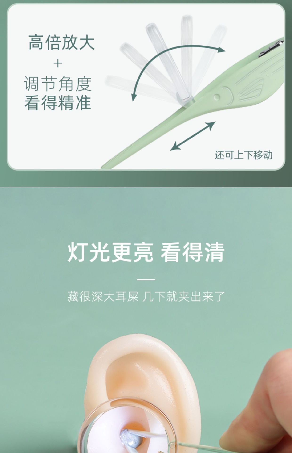 귀를 당기는 유물 빛나는 귀 파는 숟가락 당기는 도구 가벼운 어린이 안전 귀 왁스 족집게 클립이있는 부드러운 머리