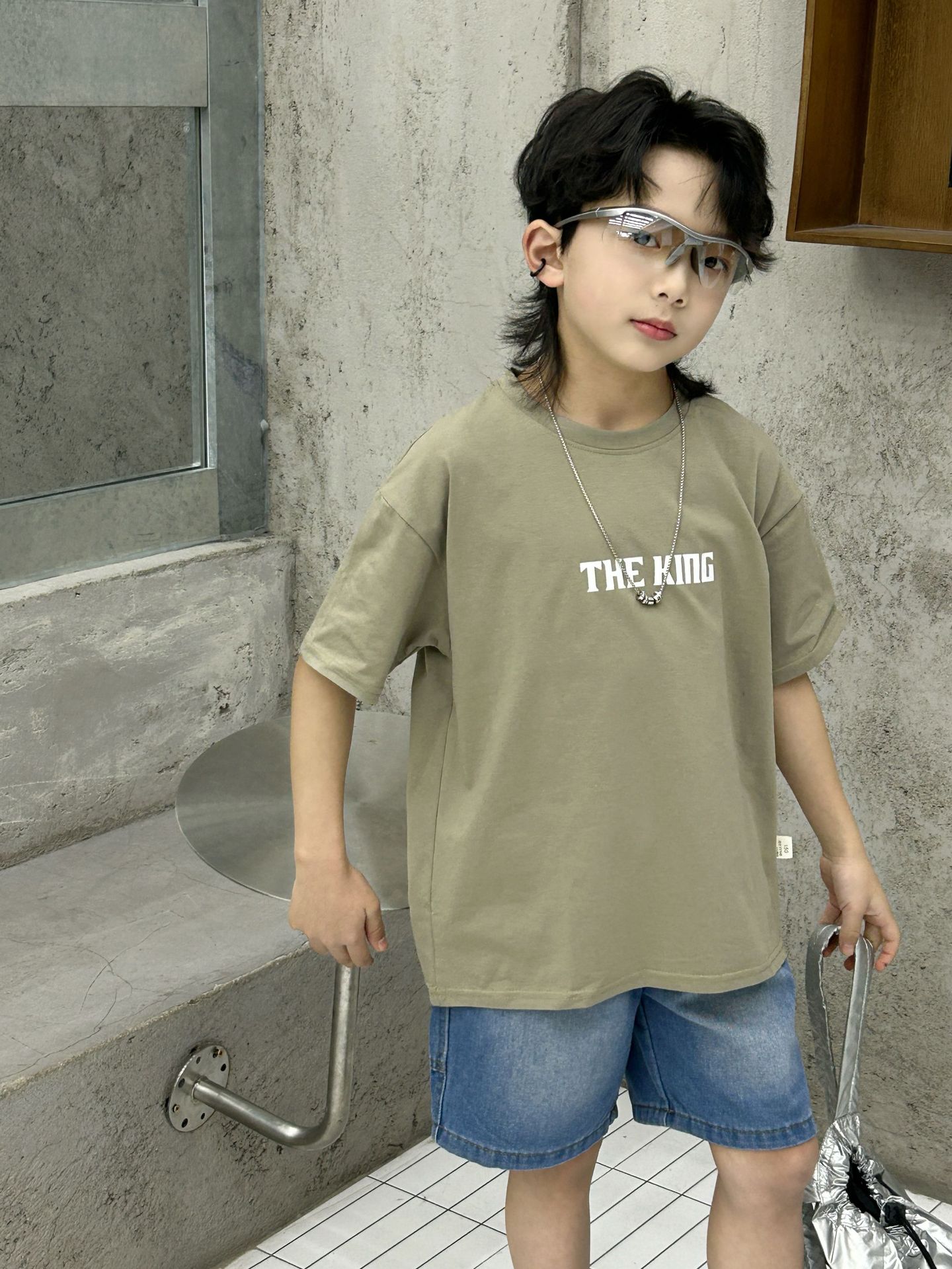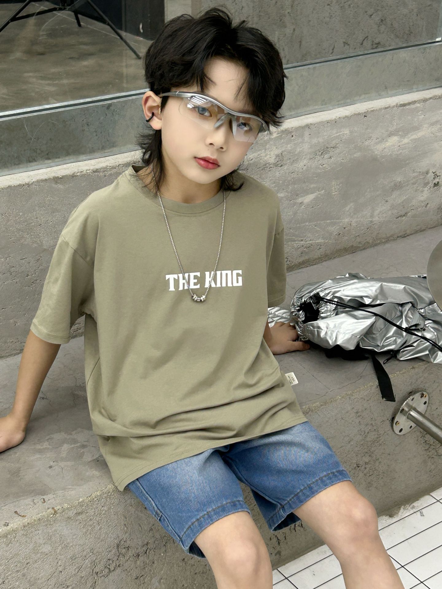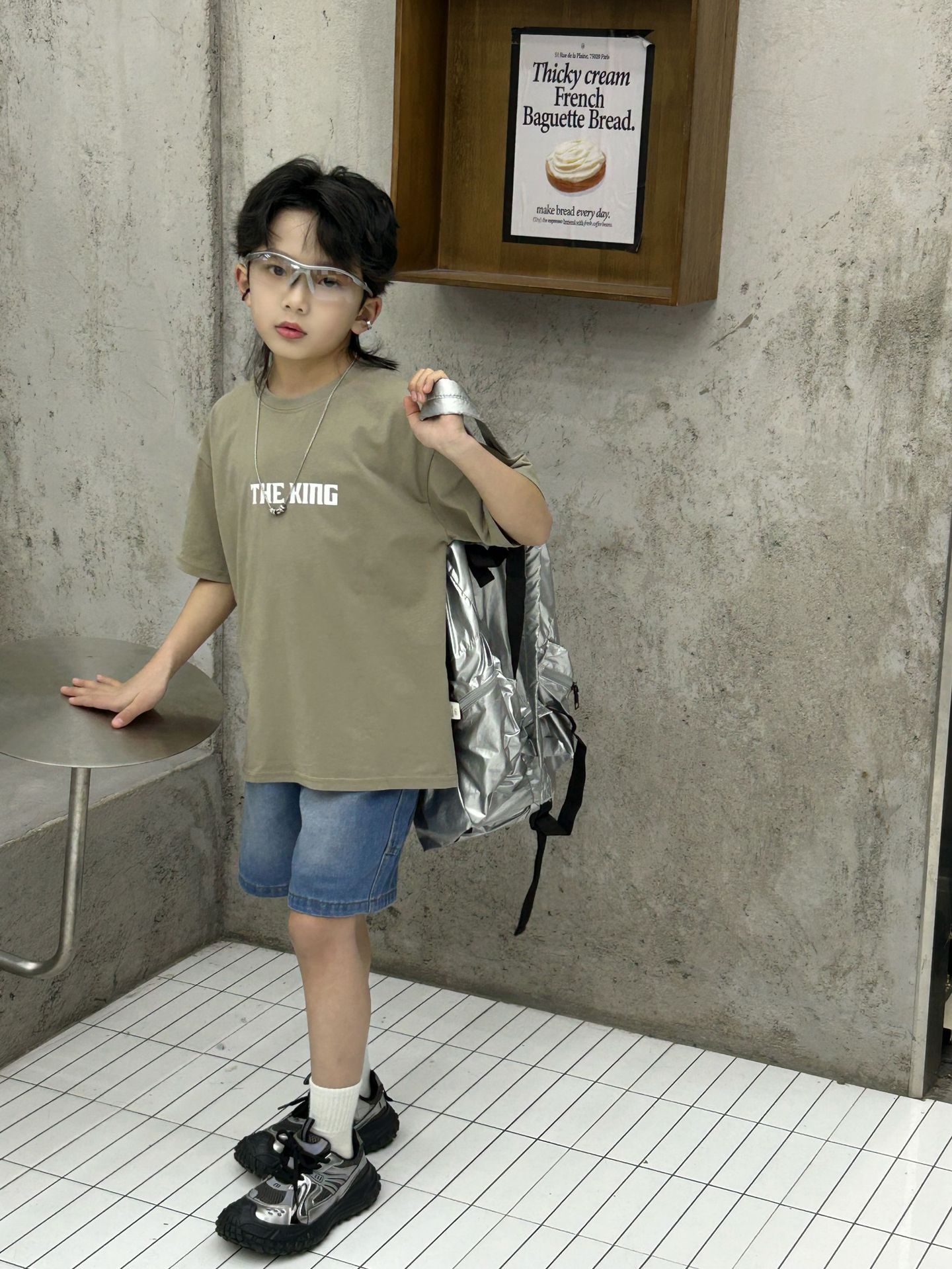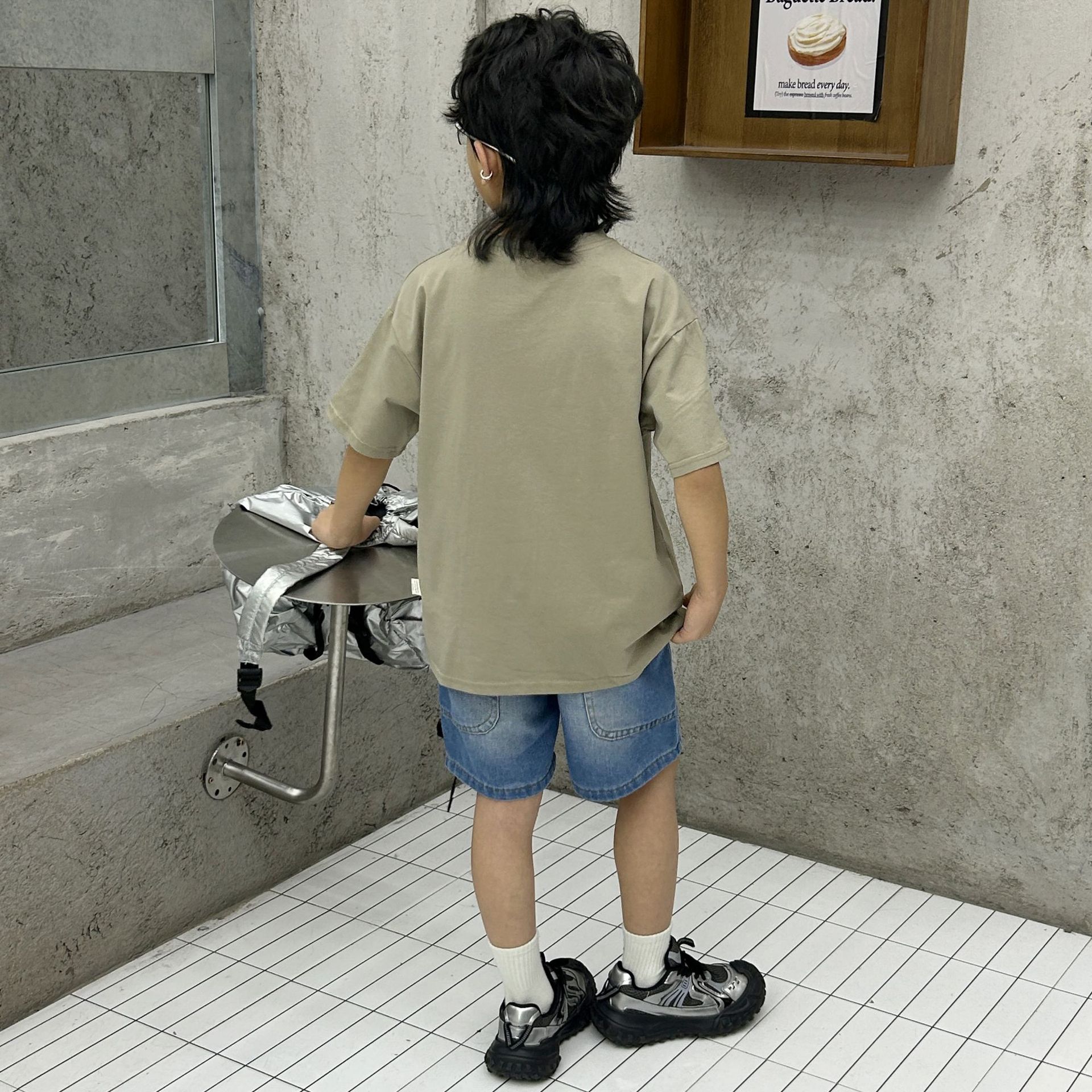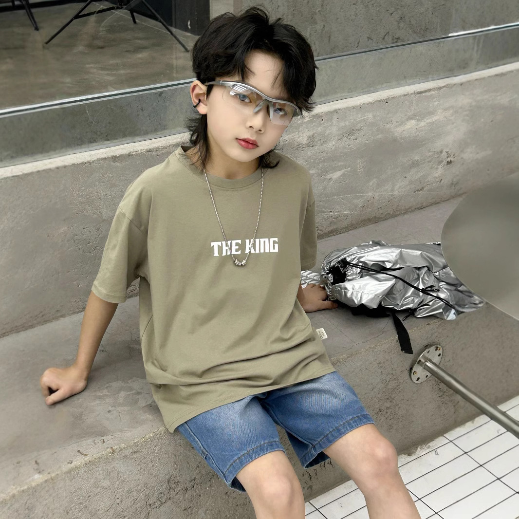 소년 여름 반팔 티셔츠 2025 새로운 어린이 탑 어린이 반팔 티셔츠 데님 반바지 세트 트렌디스토어 가기