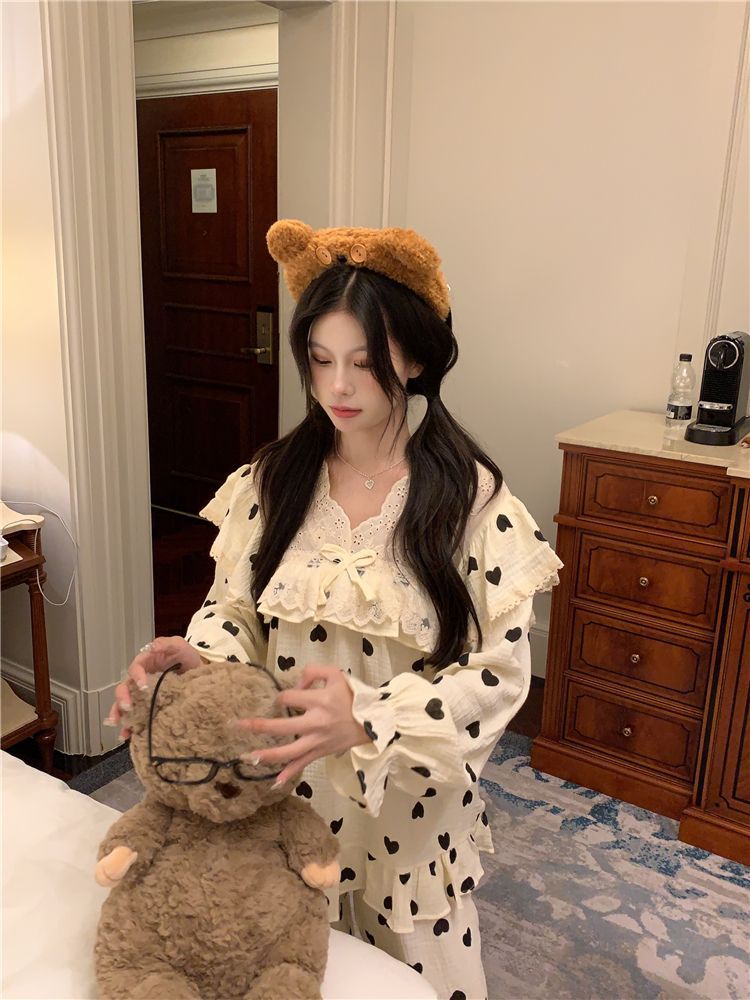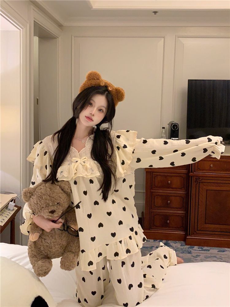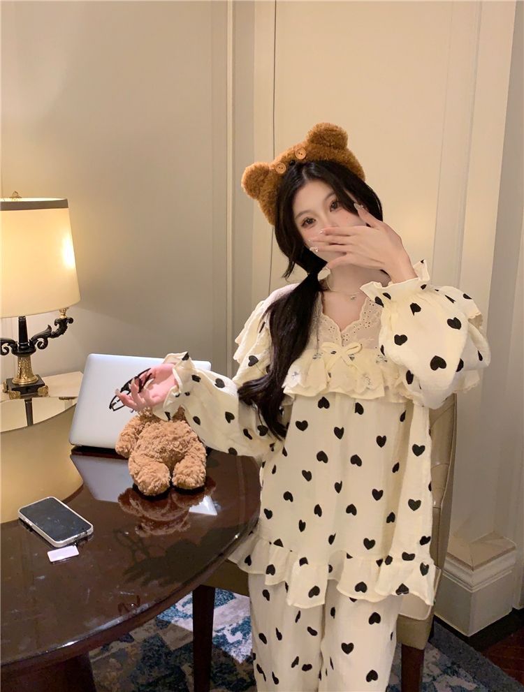 달콤하고 사랑하는 잠옷 여성의 봄과 가을 새로운 긴팔 바지 Ins 일본 학생 홈 의류 세트 및 외복스토어 가기