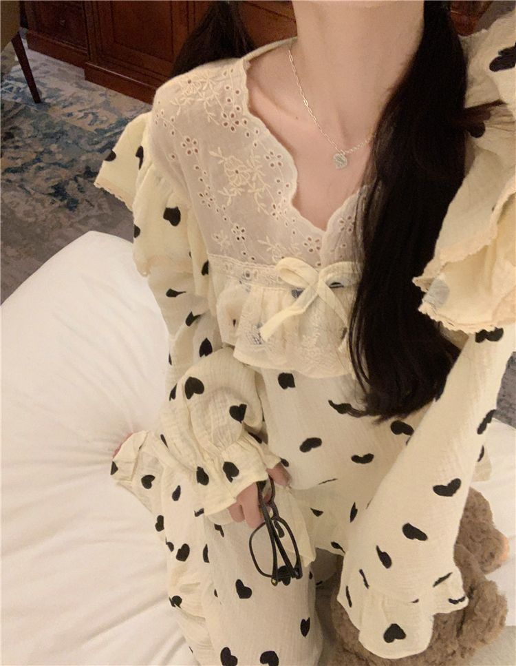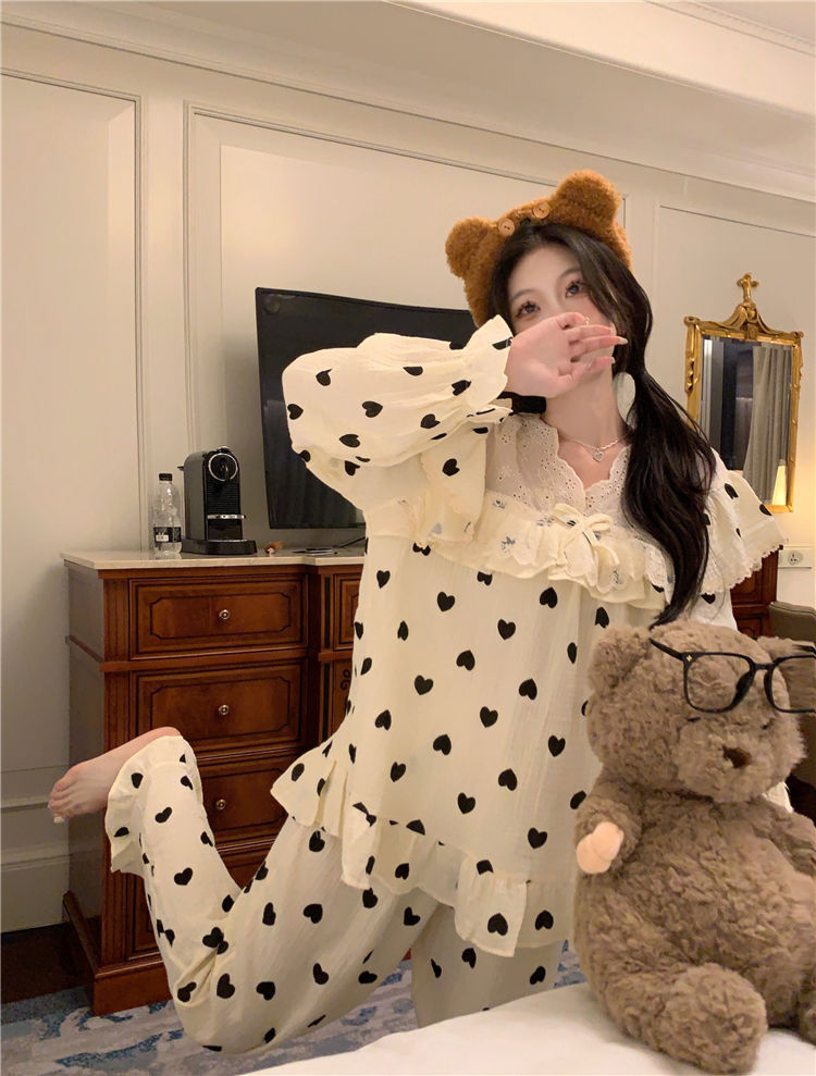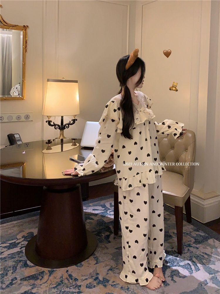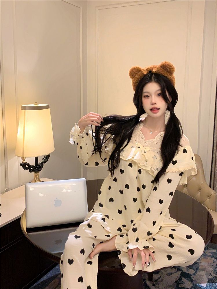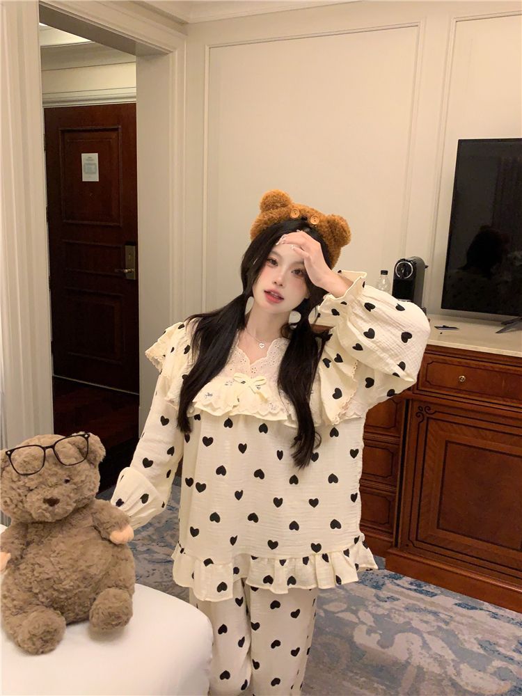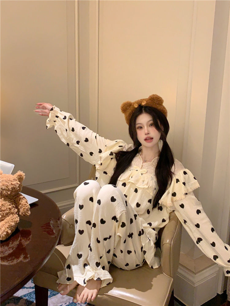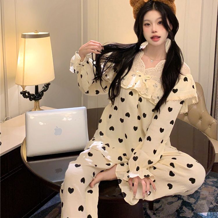 달콤하고 사랑하는 잠옷 여성의 봄과 가을 새로운 긴팔 바지 Ins 일본 학생 홈 의류 세트 및 외복
