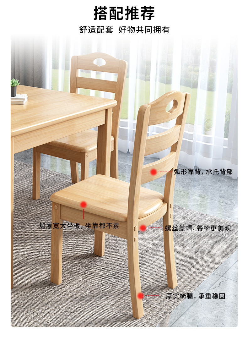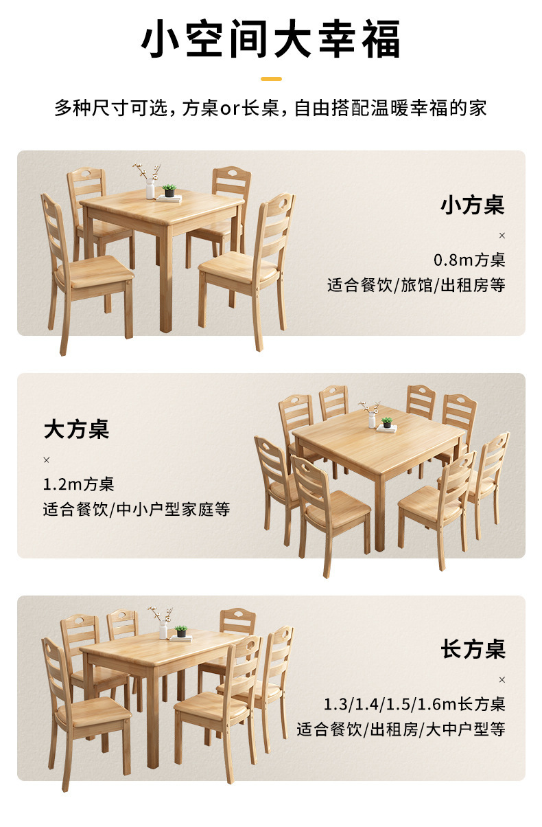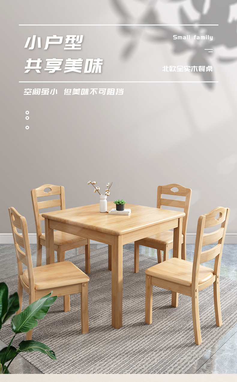 단단한 나무 식탁 및 의자 조합 현대 간단한 가정 거실 작은 아파트 북유럽 레스토랑 식탁 대여 집 공장스토어 가기