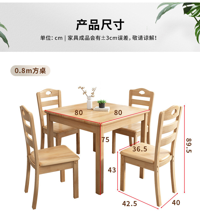 • 0.8m 정사각형 테이블, 테이블 1개, 의자 4개