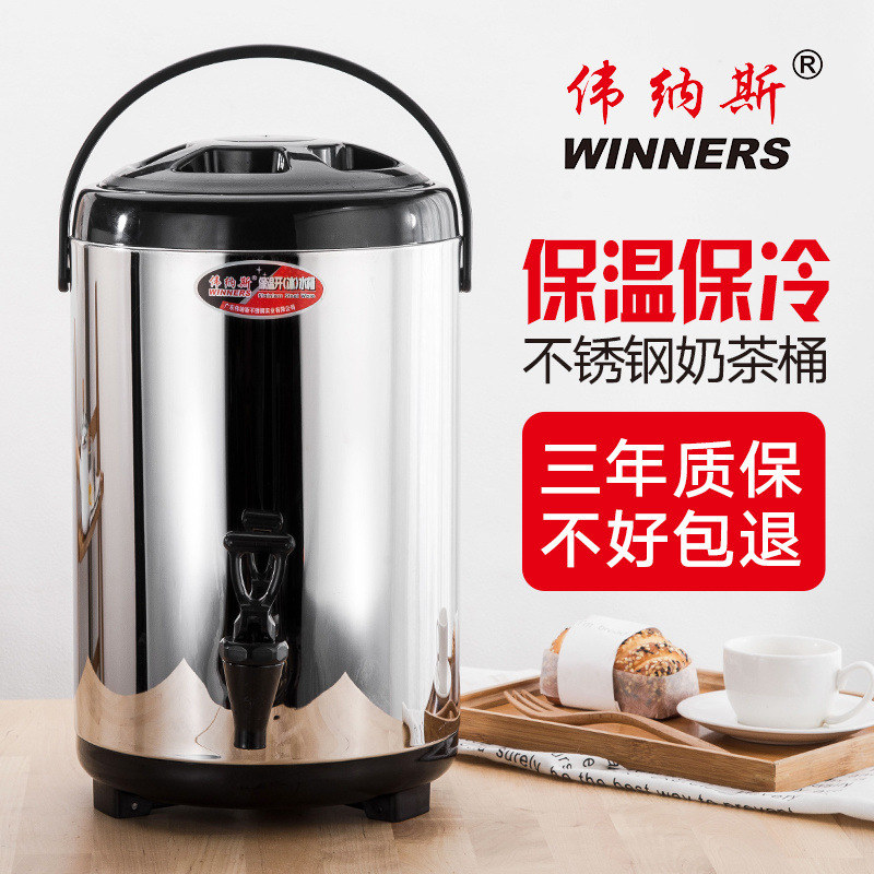 스테인레스 스틸 밀크 티 버킷 커피 주스 콩 우유 버킷 상업용 더블 레이어 밀크 티 샵 대용량 절연 버킷 상업용 마구간