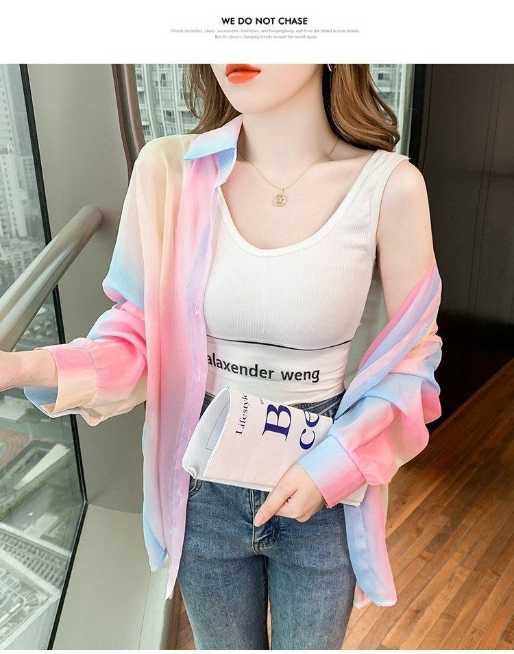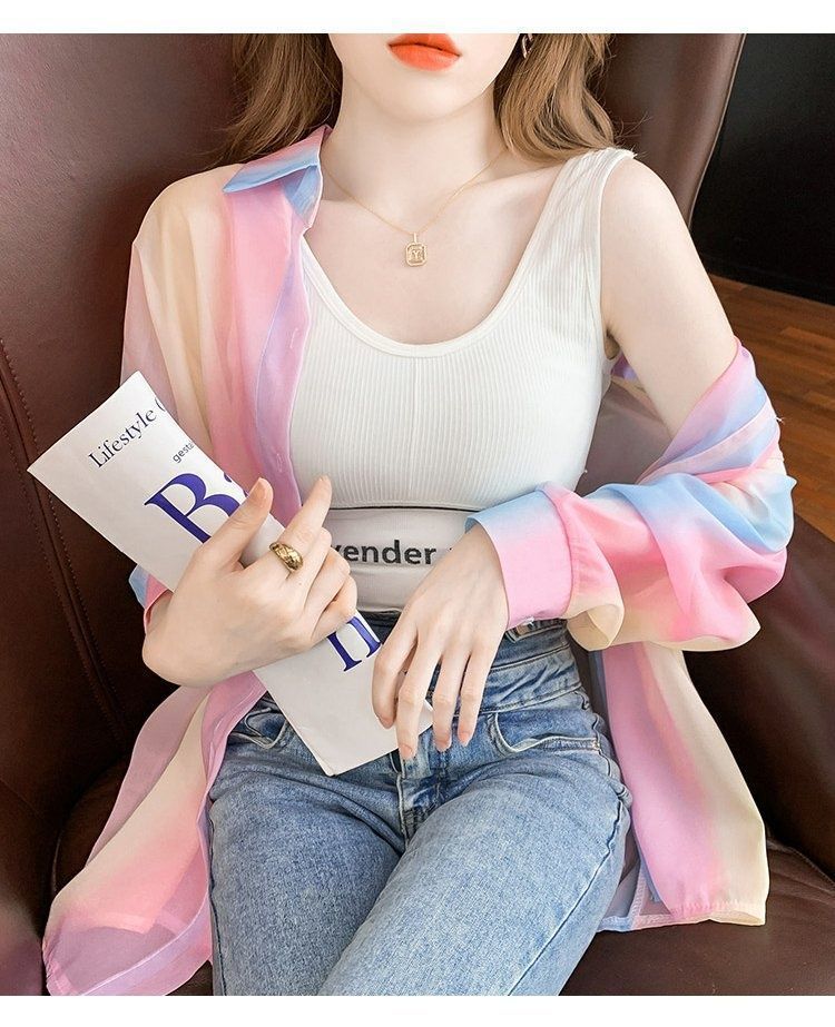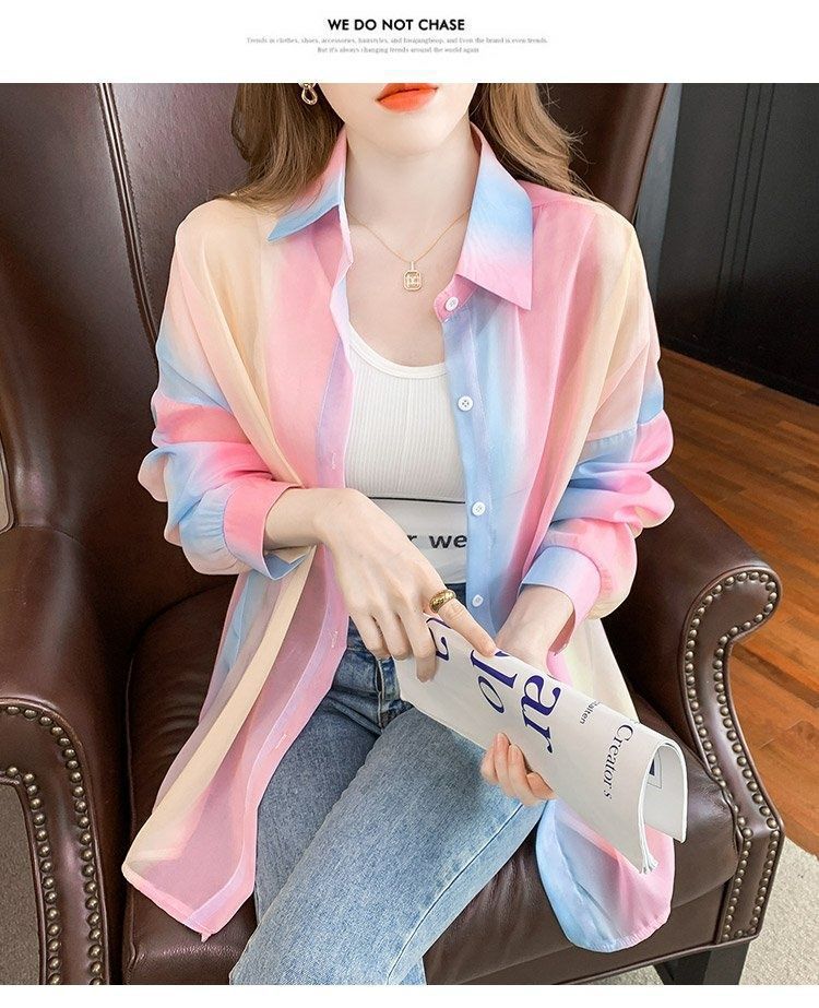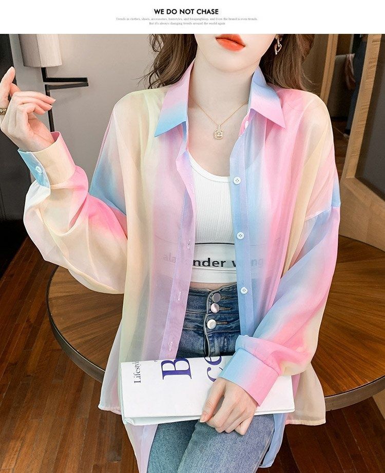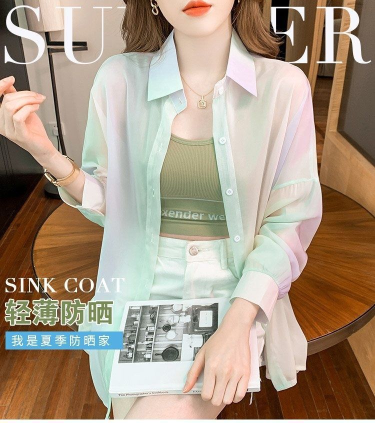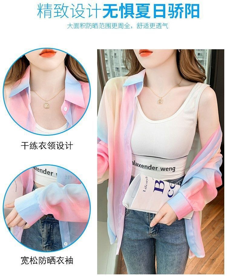 태양 보호 의류 여성 여름 2024 새로운 얇은 긴팔 레인보우 셔츠 유행 세련된 외부 착용 경량 카디건 재킷스토어 가기