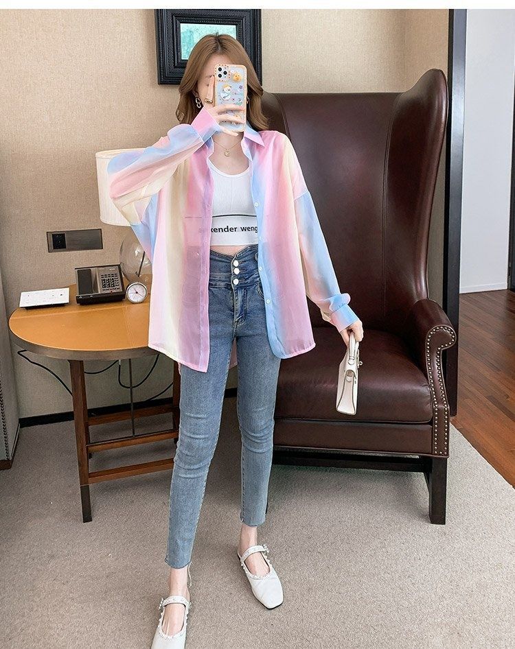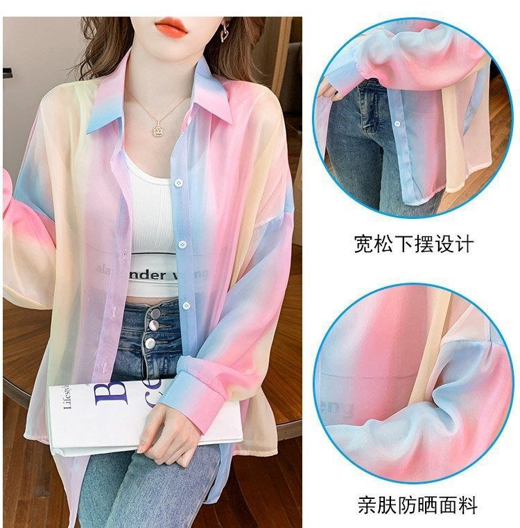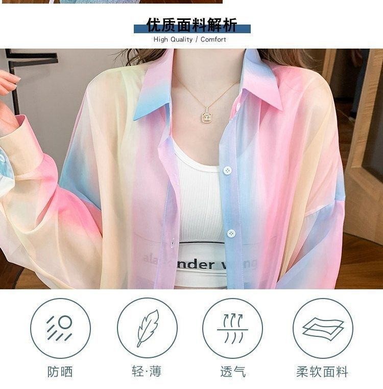태양 보호 의류 여성 여름 2024 새로운 얇은 긴팔 레인보우 셔츠 유행 세련된 외부 착용 경량 카디건 재킷