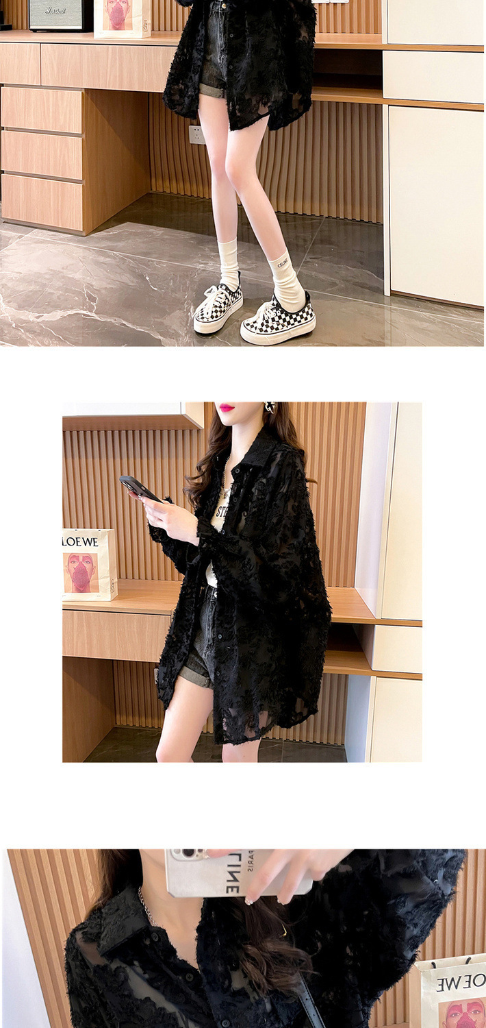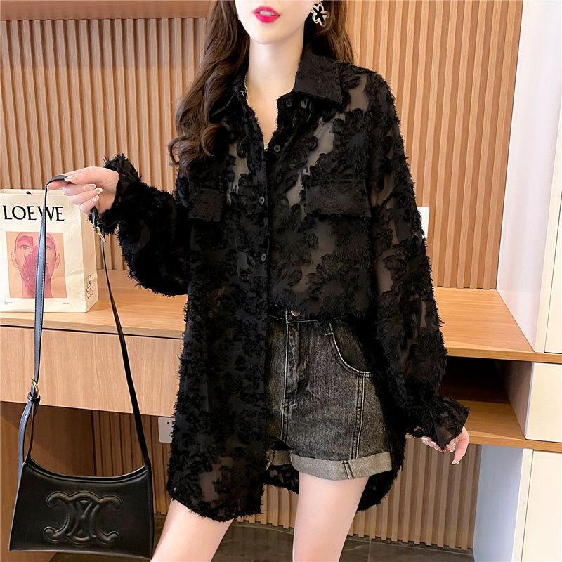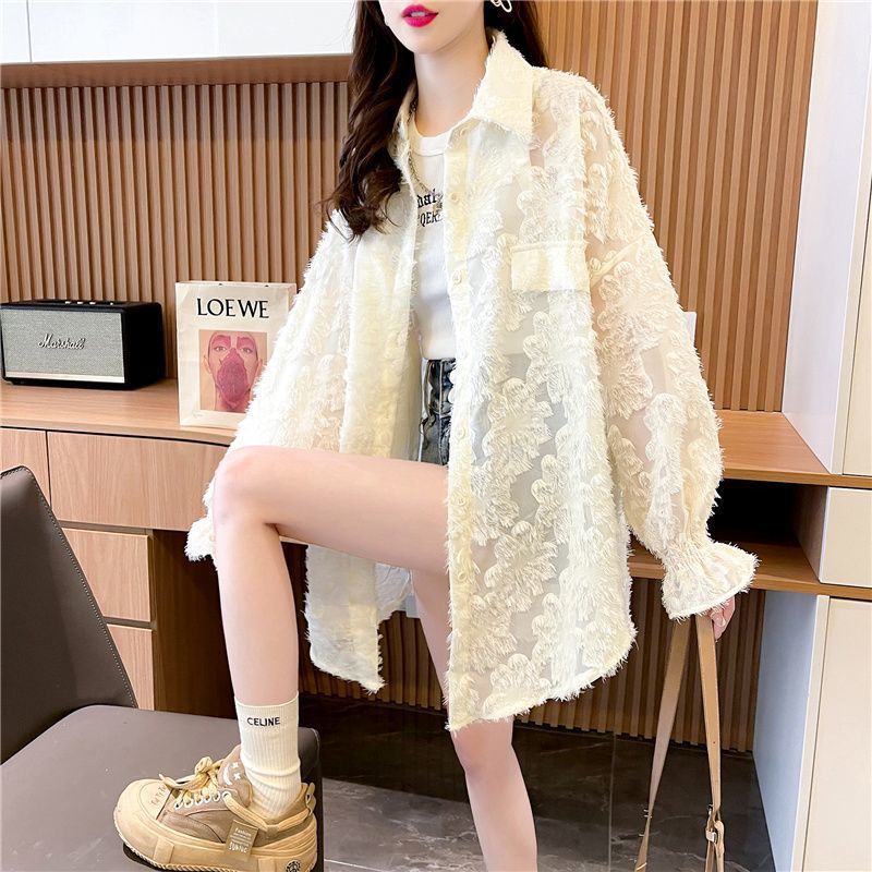 통기성 셔츠 선스크린 여성의 여름 2024 새로운 한국 스타일 느슨한 플러스 사이즈 아이스 실크 얇은 캐주얼 카디건 재킷스토어 가기