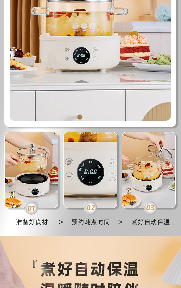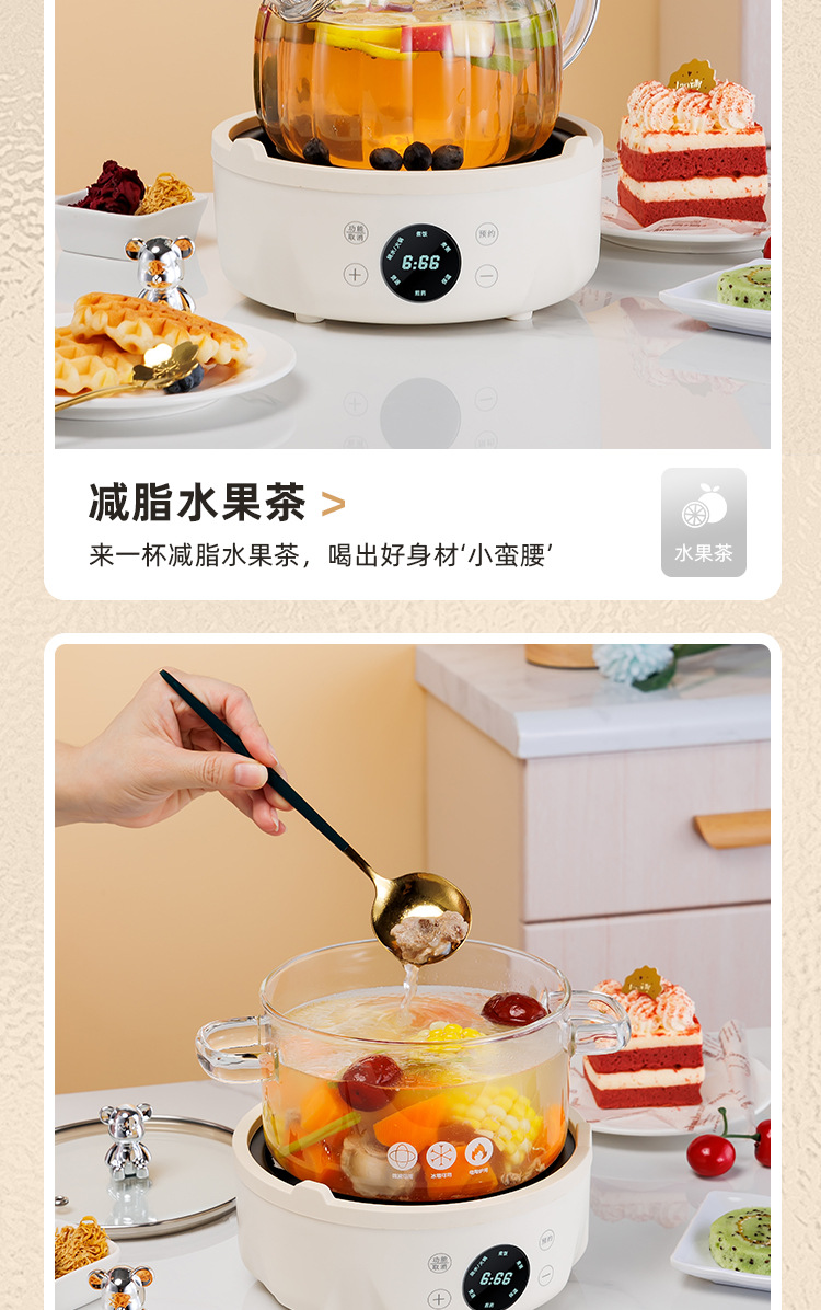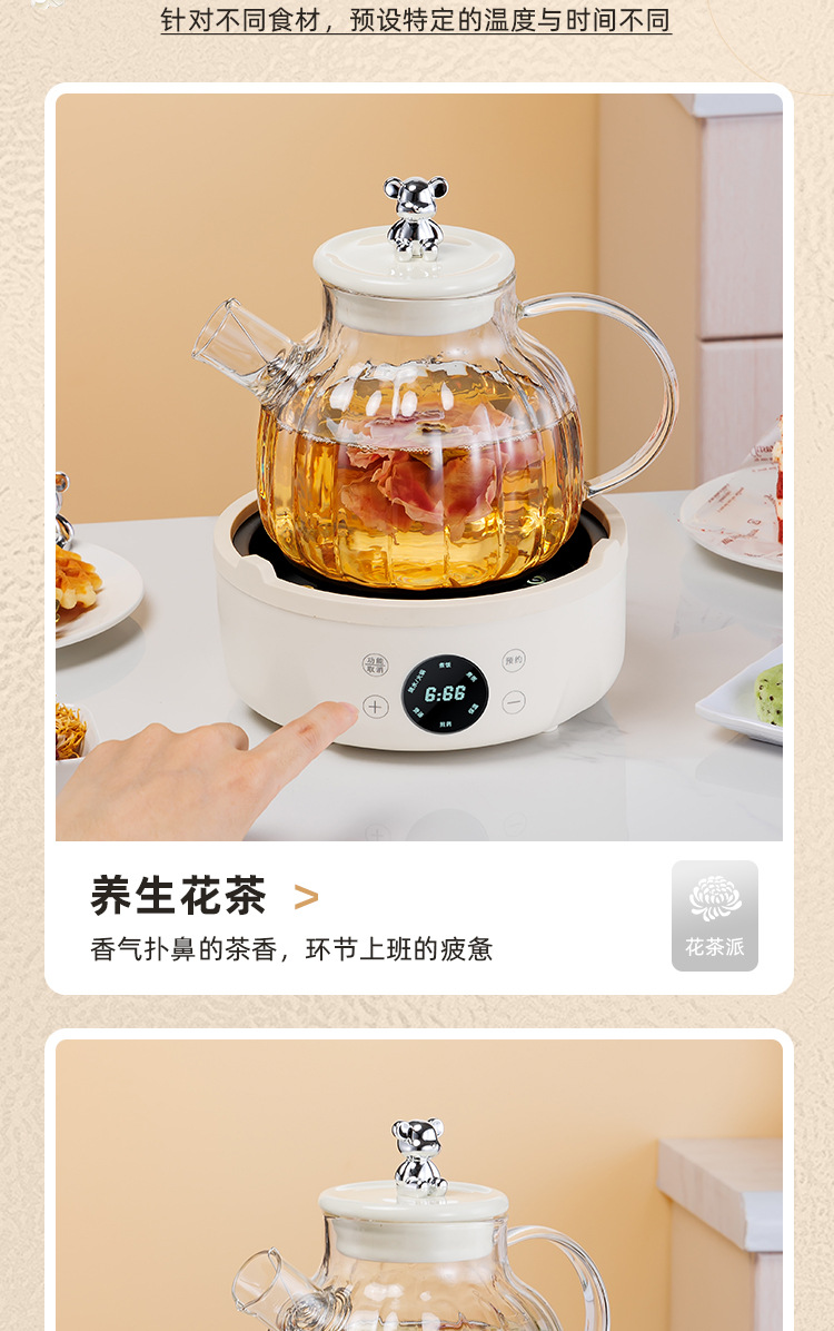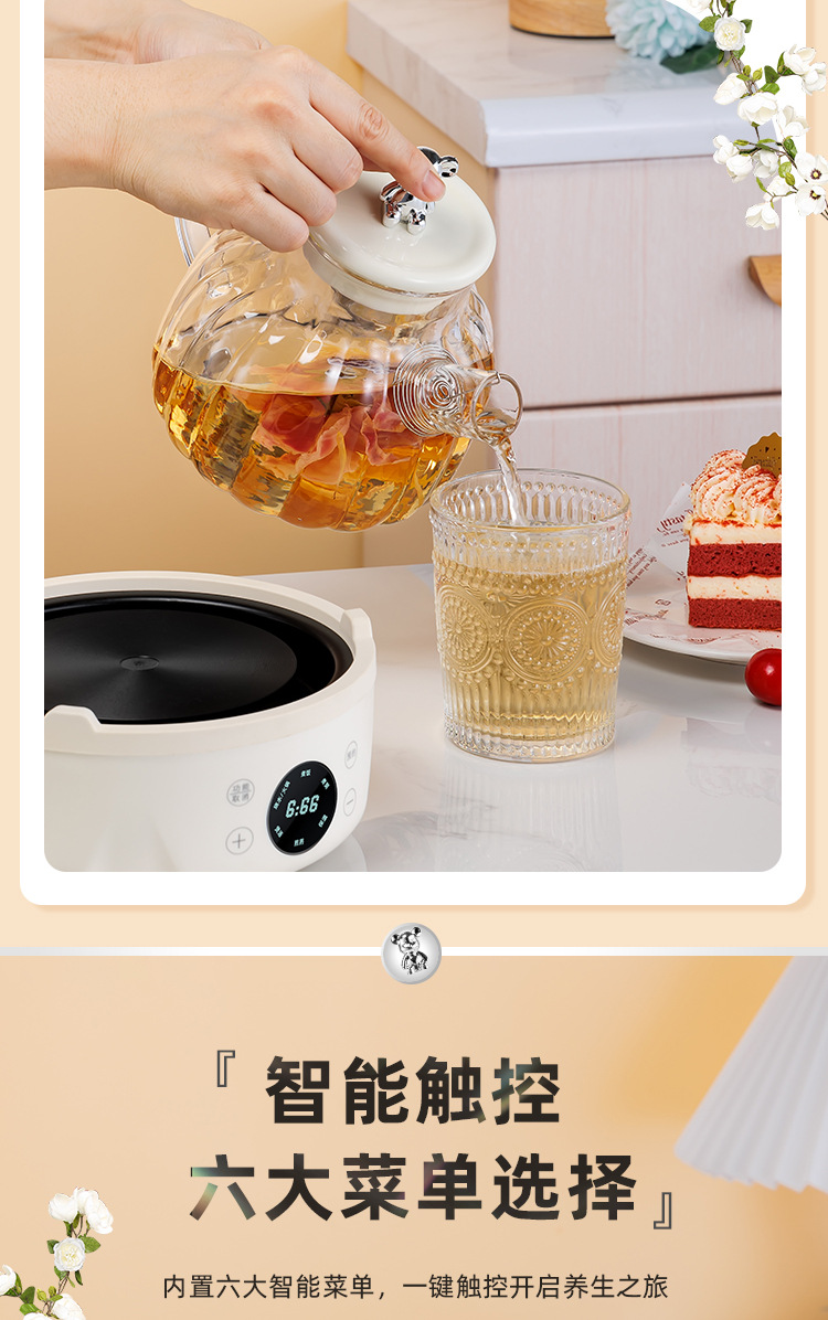 다기능 유리 차 보일러 가정용 건강 냄비 작은 사무실 꽃 차 냄비 수프 냄비 건강 냄비 세트