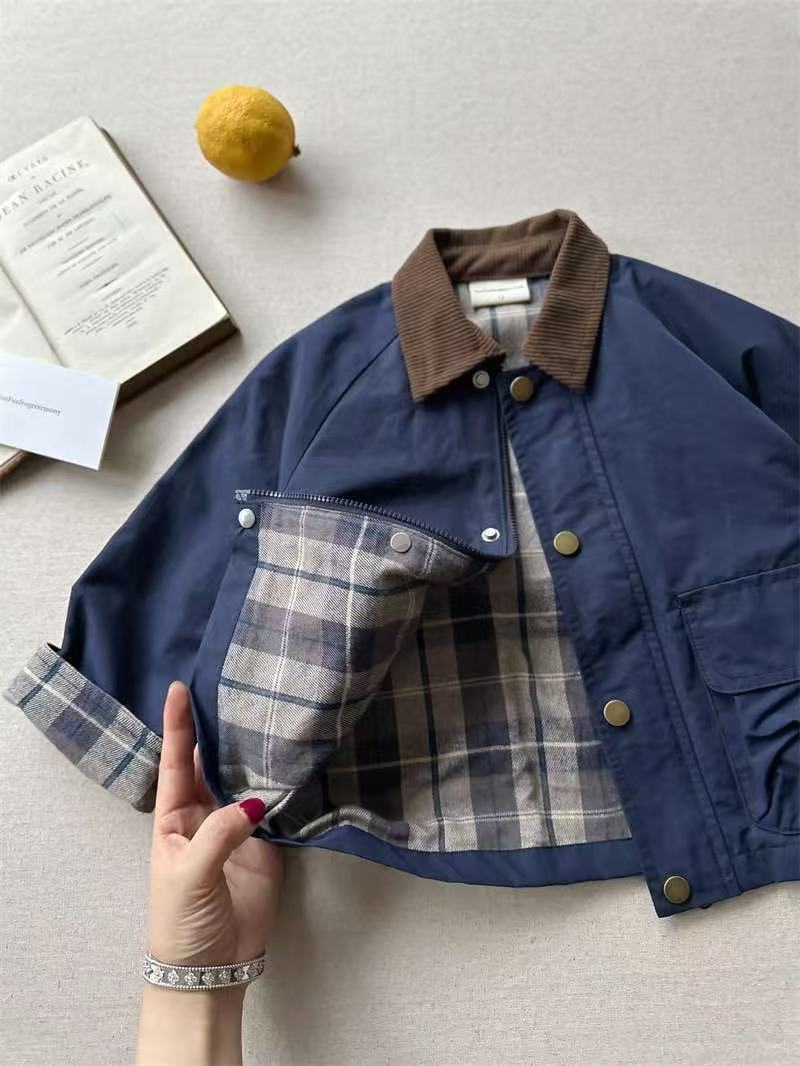 어린이 봄과 가을 코트 2025 소년 소녀를위한 봄 일본과 한국 패션 브랜드 격자 무늬 패치 워크 재킷 아기의 클래식 웨스턴 스타일 코트