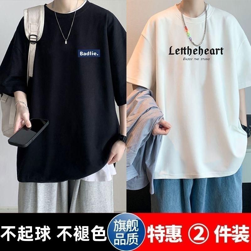 구매 1 Get One Get One Get One Get One Get Spring Summer Boys 반팔 티셔츠 홍콩 스타일 느슨한 반소매 남성 트렌디 브랜드, 남성용 간단한 탑 옷
