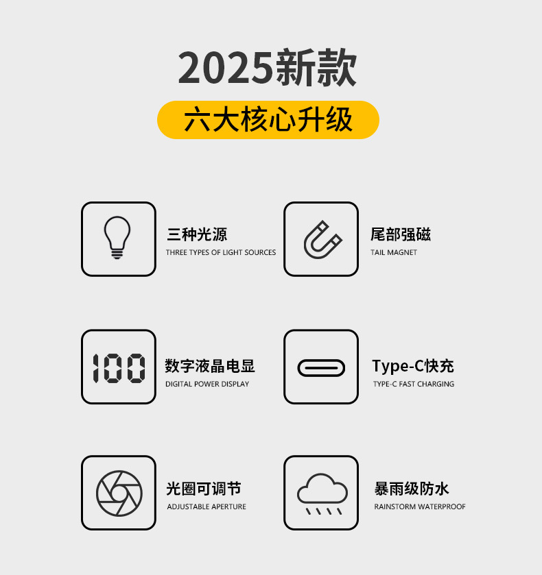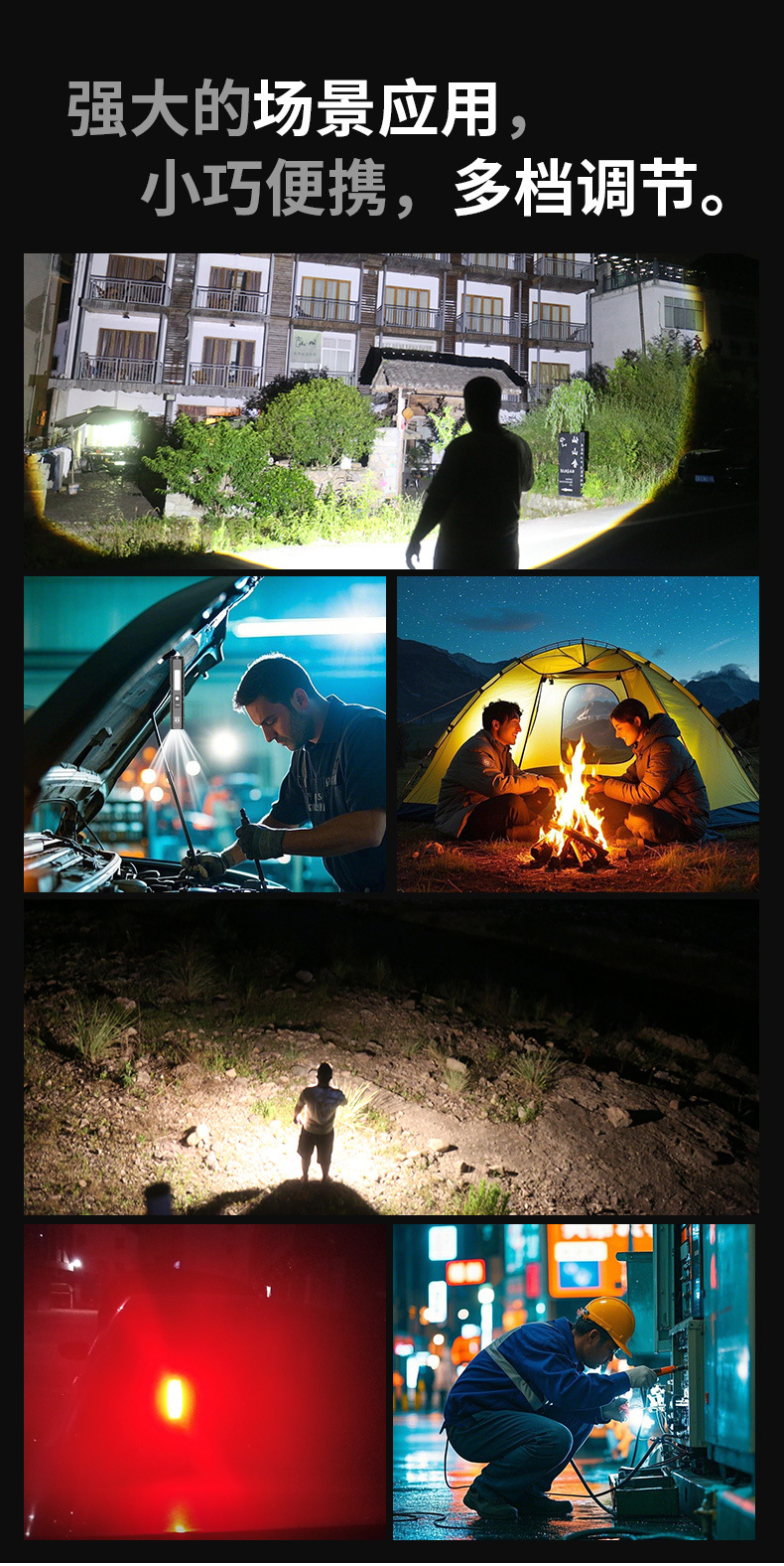 새로운 다기능 손전등 강한 재충전 가능한 야외 슈퍼 밝은 장거리 휴대용 led 작업 조명 자석