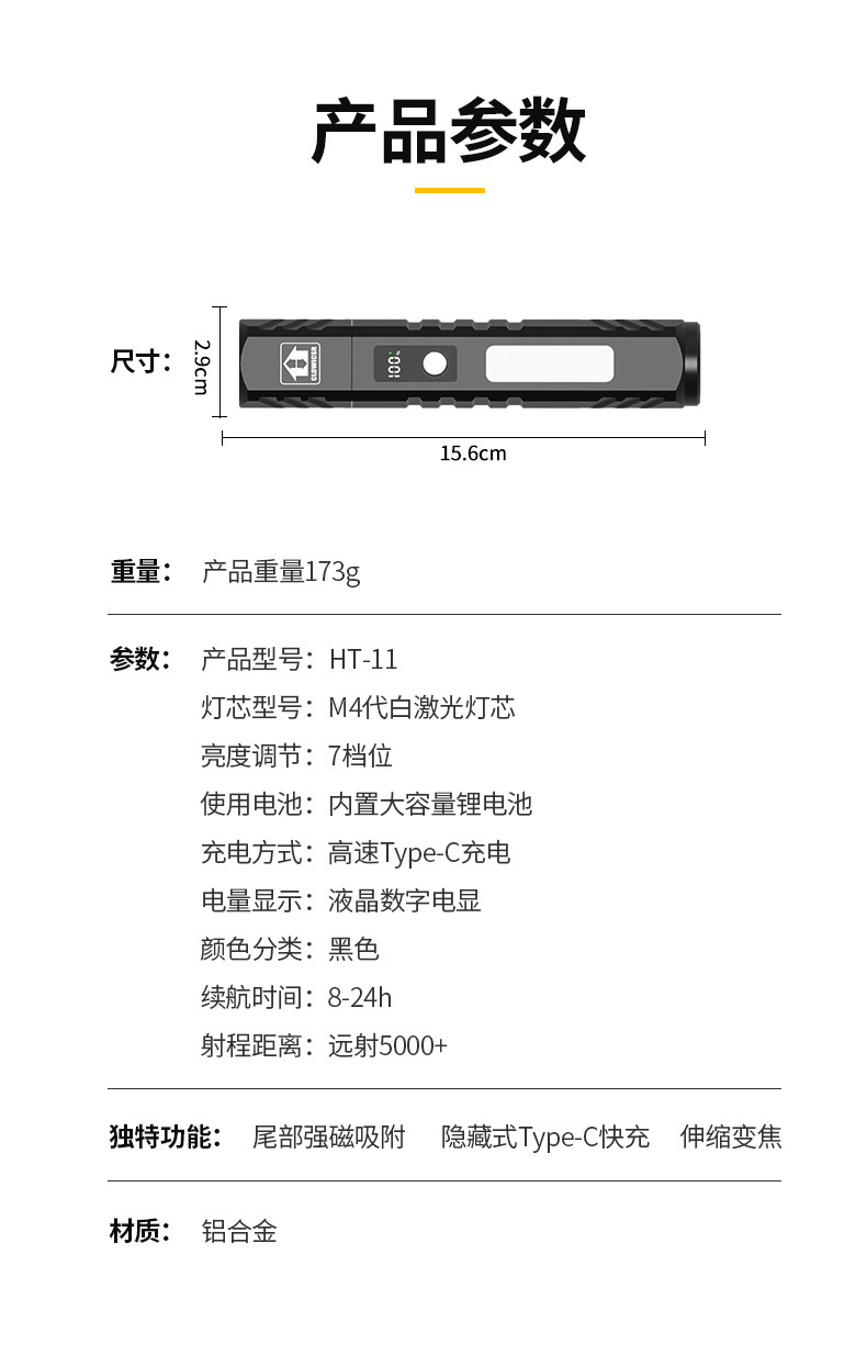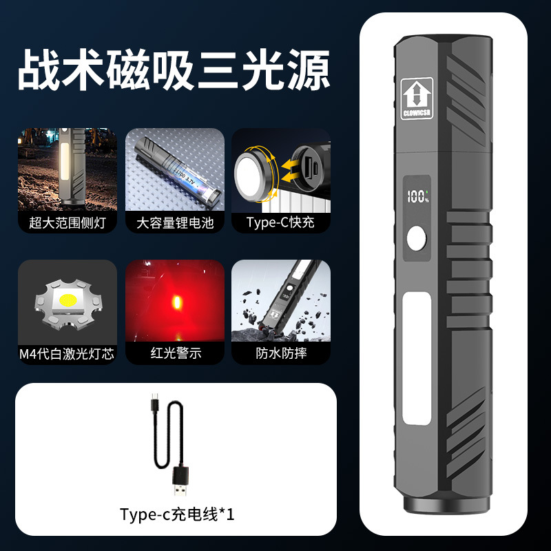 • 흰색 레이저 심지 테일 자석 COB 측면 조명 손전등